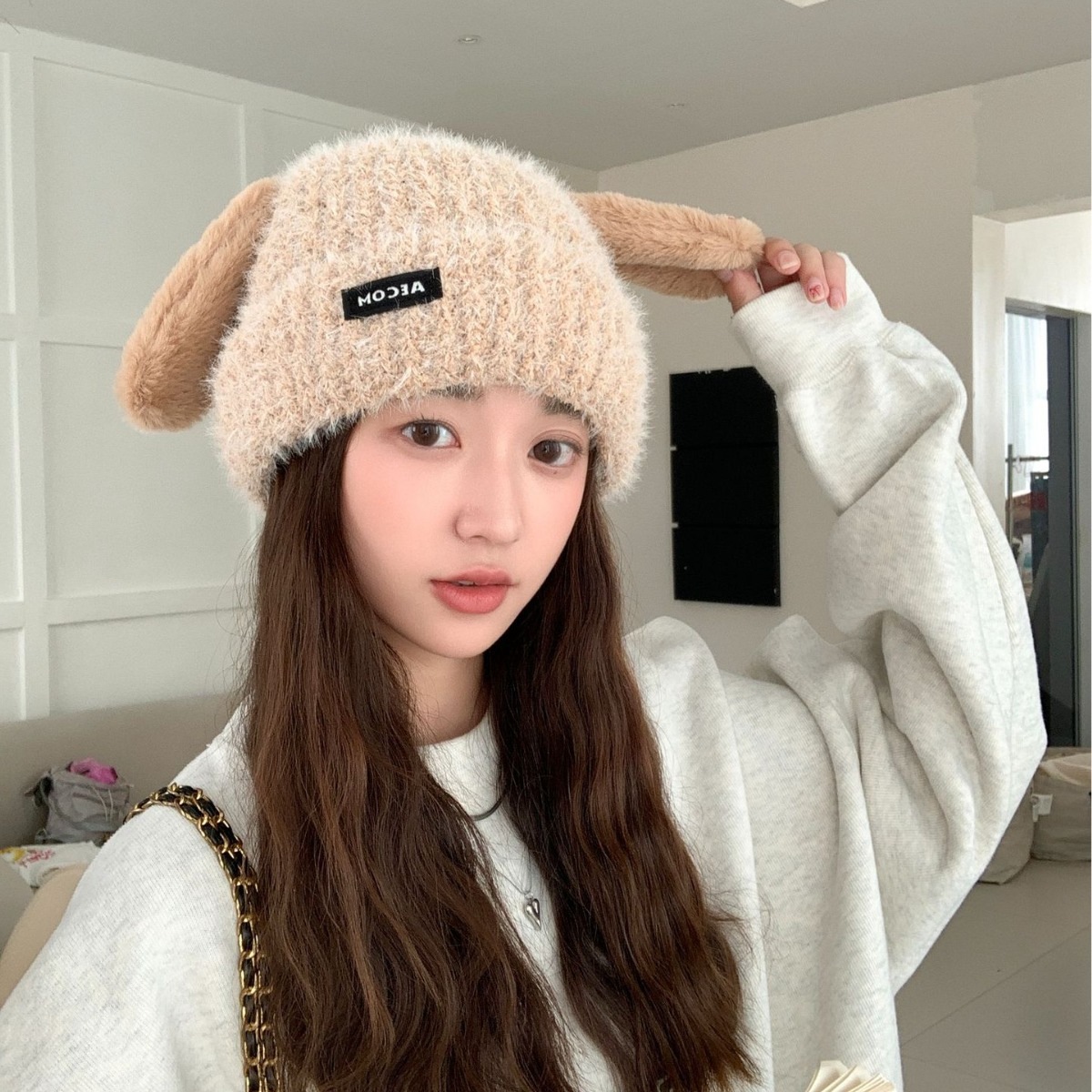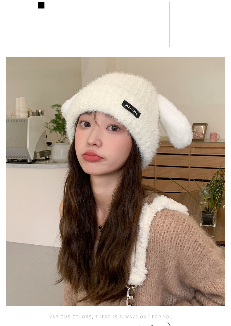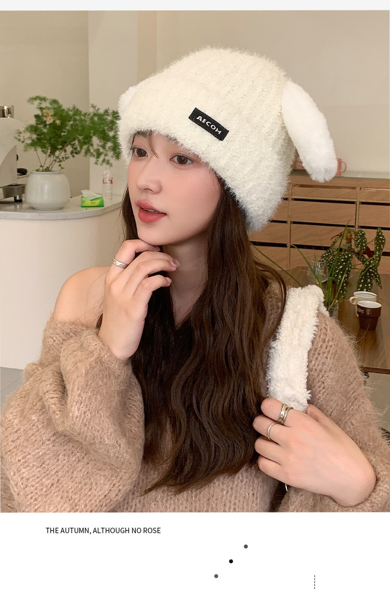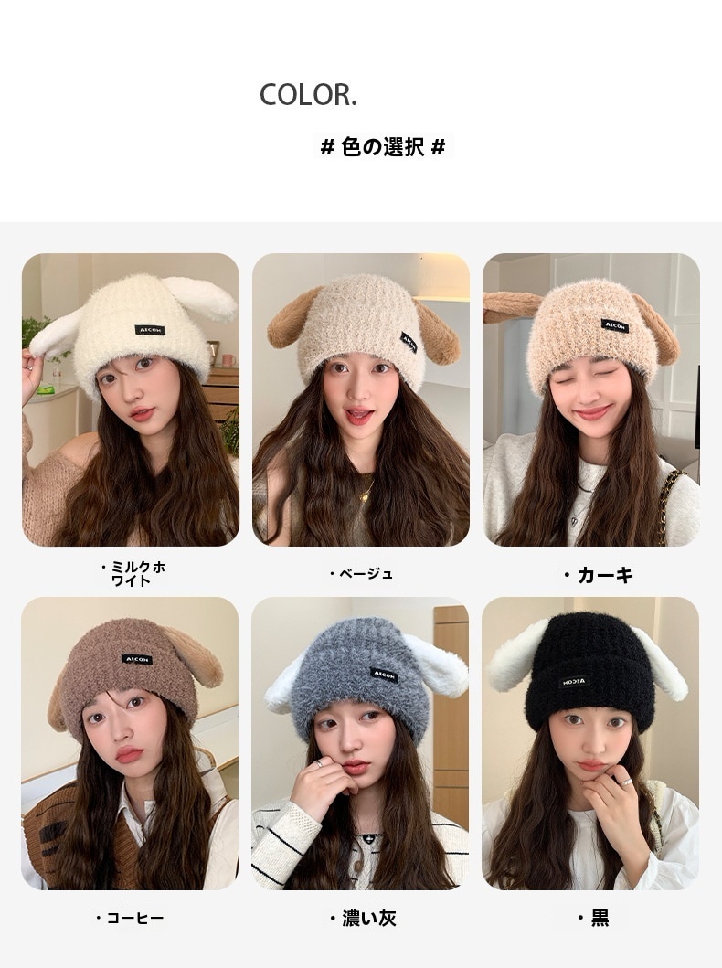 秋と冬の新しい帽子の韓国語版女性かわいい子犬の耳ニットウールキャップ冬暖かい学生の耳保護寒い帽子 ニット帽