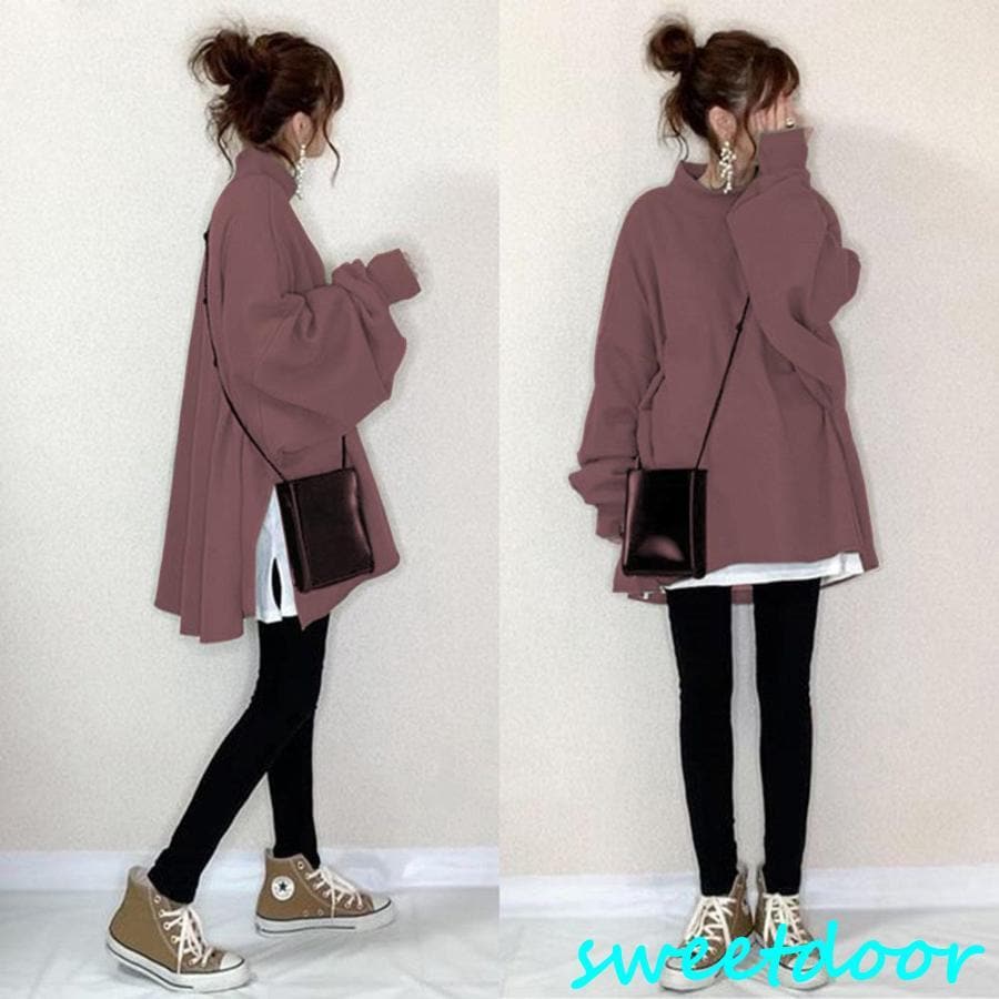 パーカー トップス レディース 長袖トップス 秋トップス オシャレ 重ね着 カジュアル ゆったり 体型カバー シンプル 着痩せ スリット パフスリーブ 大人