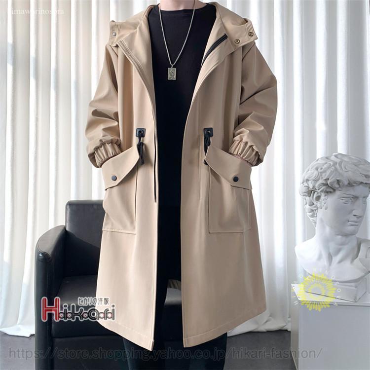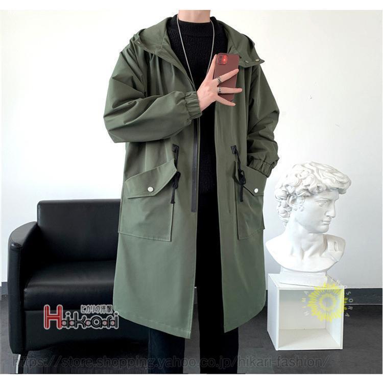 スプリングコート メンズ ロング丈 パーカー 春服 マウンテンパーカー ロングジャケット 無地 40代 50代 メンズファッション 父の日 パーカー