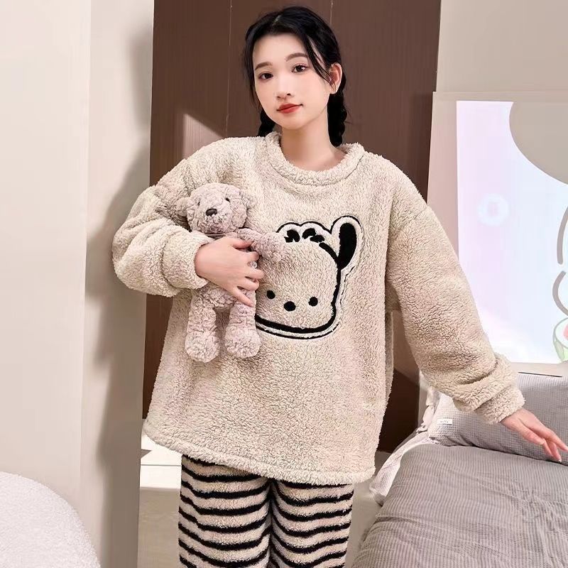 パジャマ女性秋冬ベルベットかわいいアニメパジャマ秋冬保温フランネル家庭服セット女性メガ割 メガ割 秋冬 裏起毛 ルームウェア 上下セット 長袖