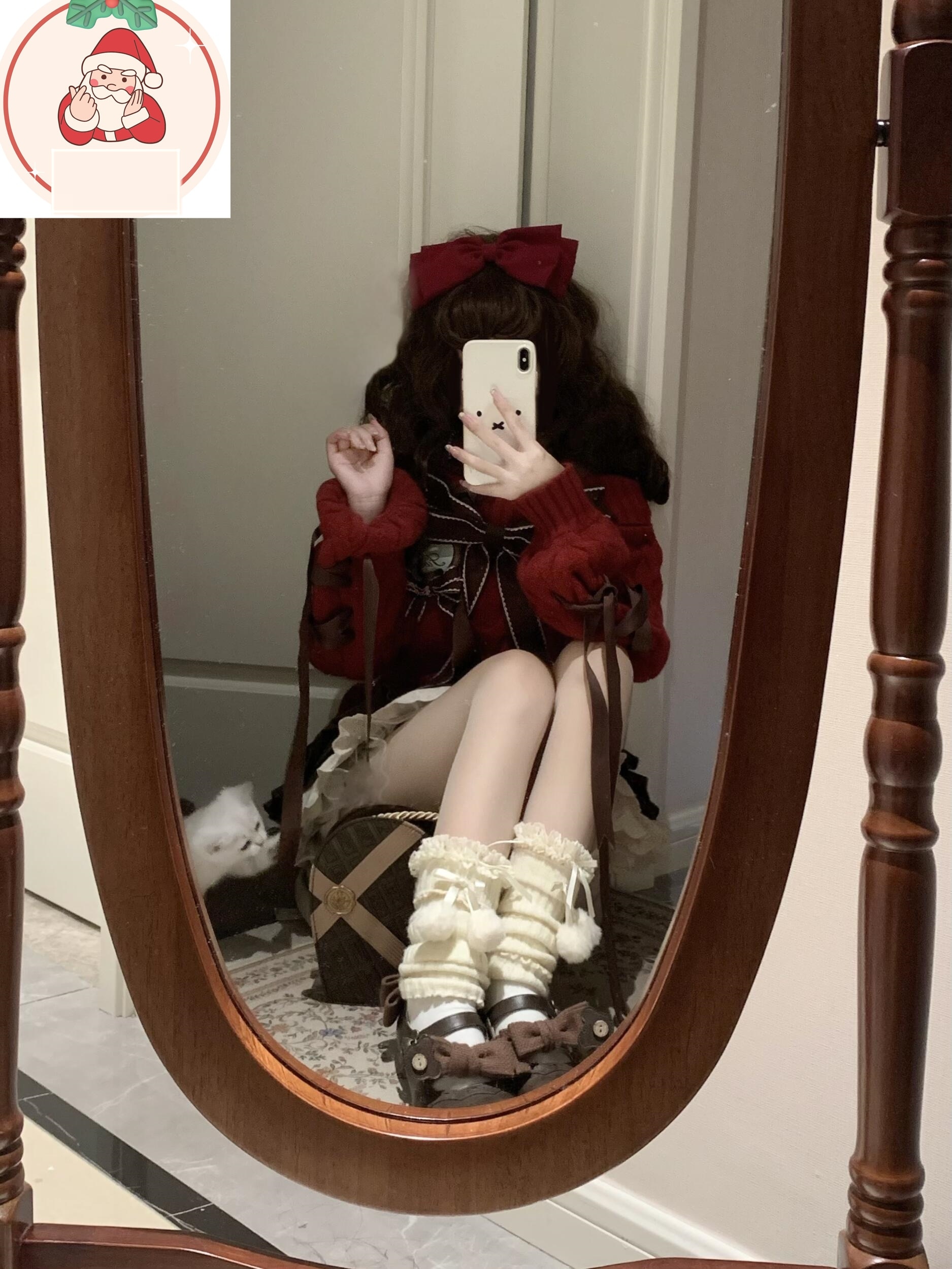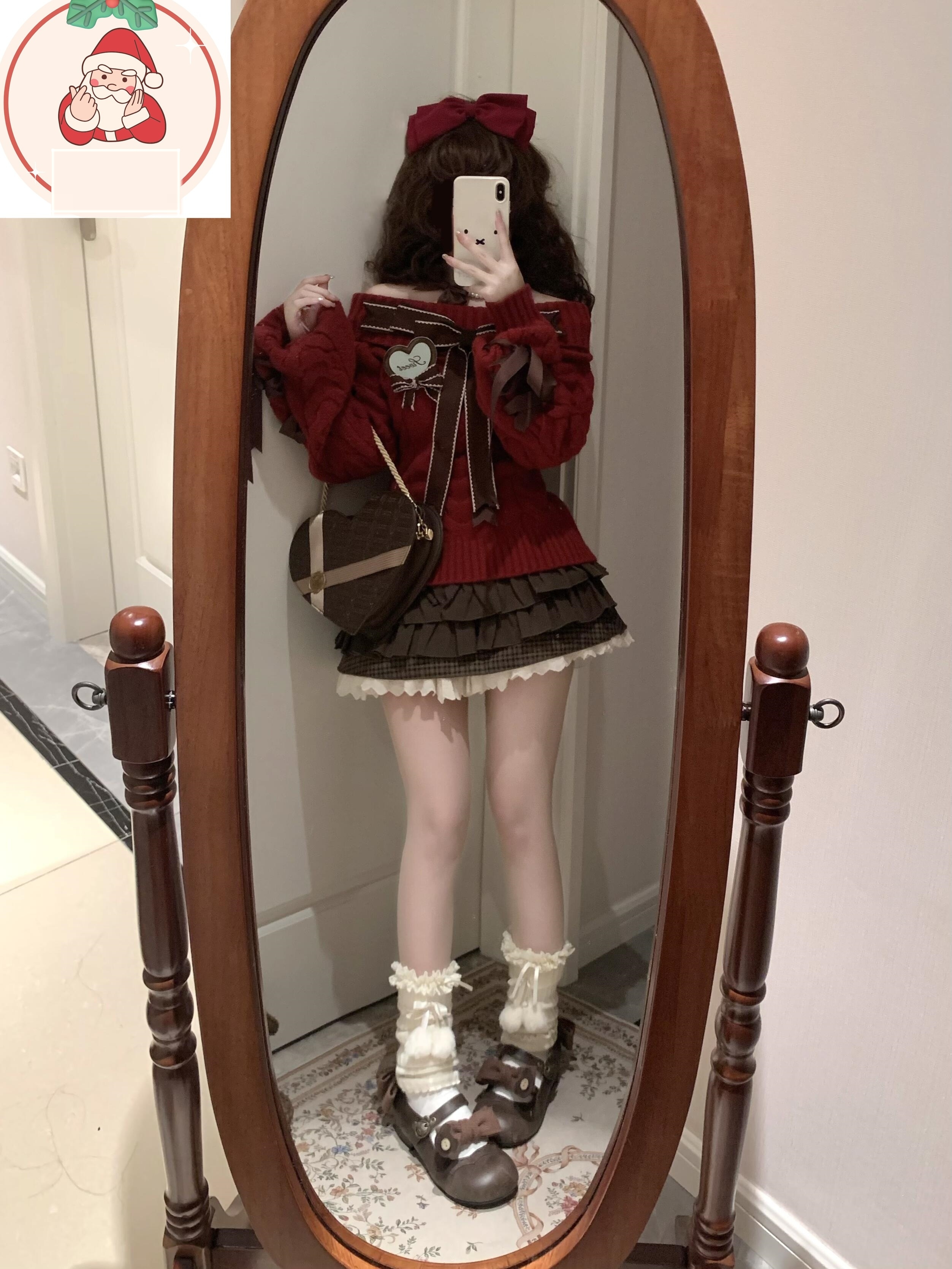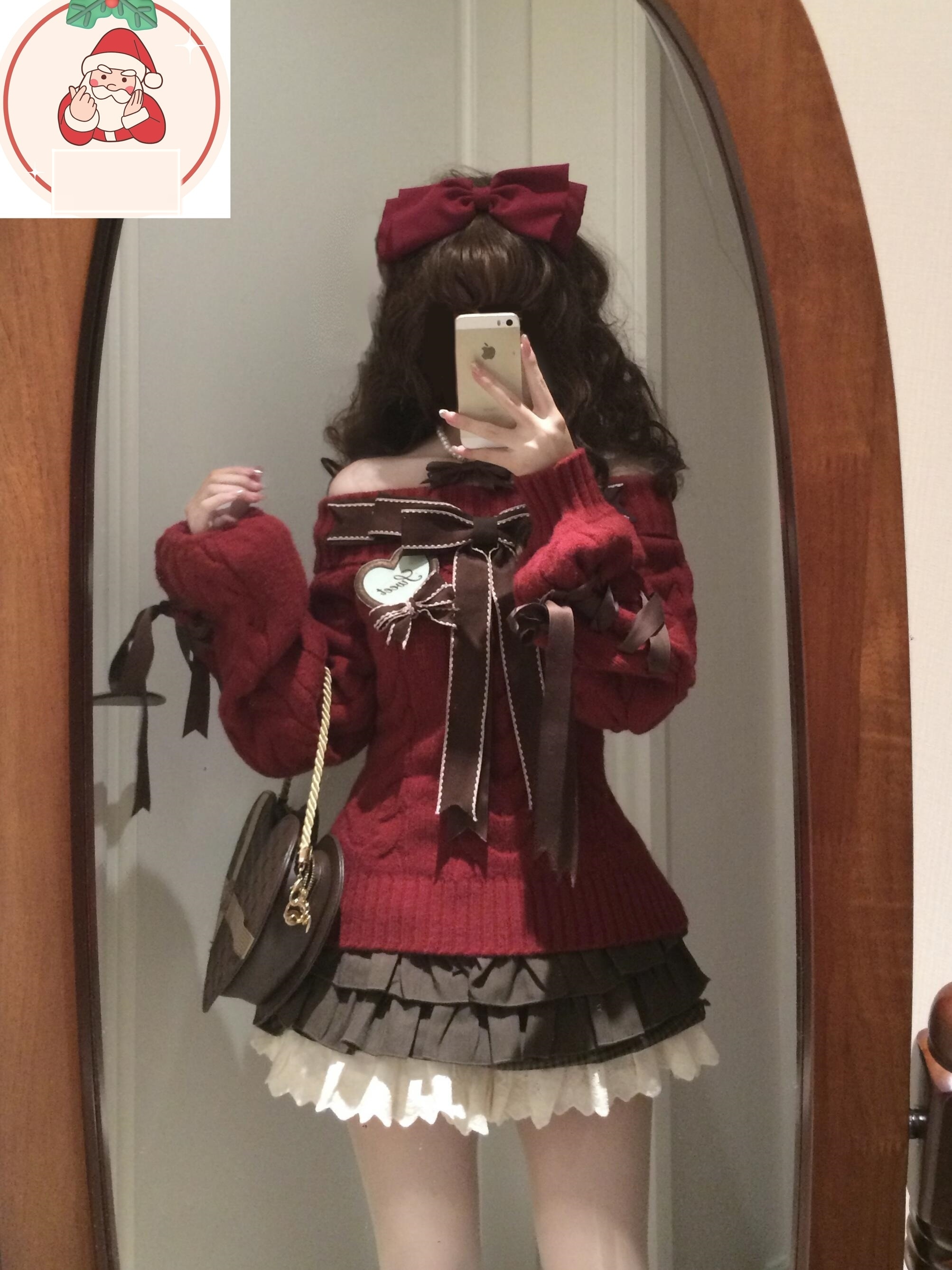 サンタコス クリスマス レッド ワンラインカラー 蝶ネクタイ ニットセーター ケーキスカート スーツ コスチューム
