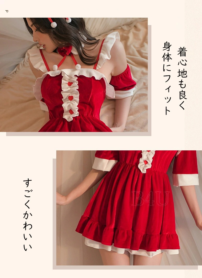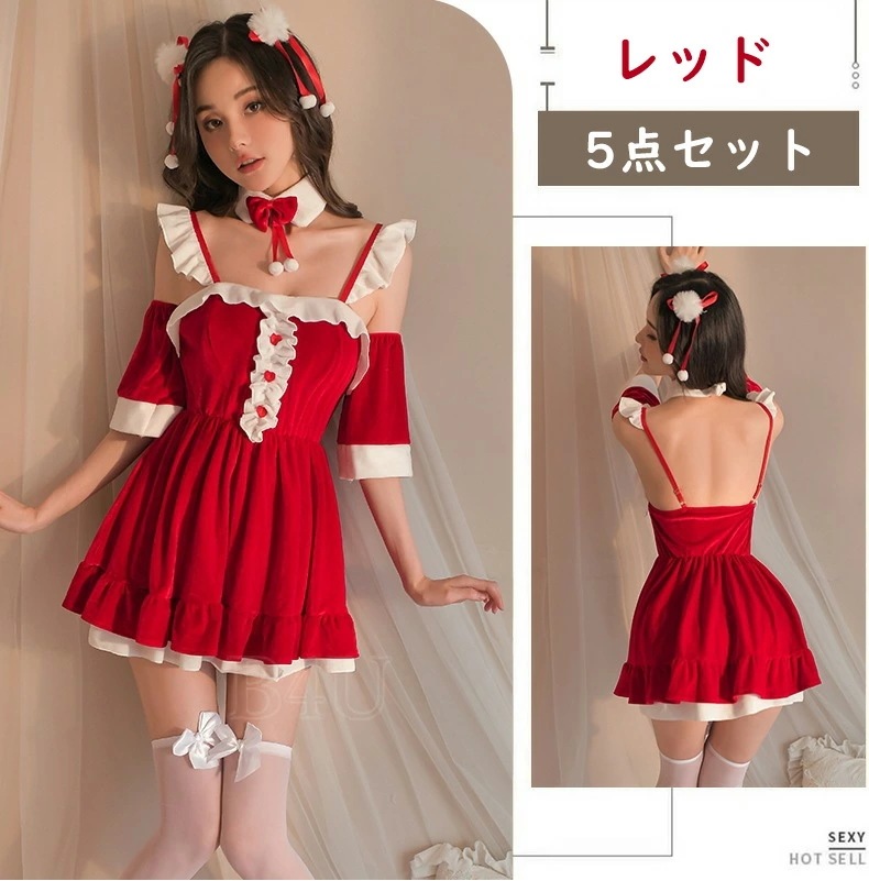 クリスマスコスプレ コスチューム ドレス レディース 5点セット 衣装 仮装 ワンピース サンタ パーティードレス ウサギ かわいい クリスマス衣装 サンタコス サンタクロース 演出服 パーティ