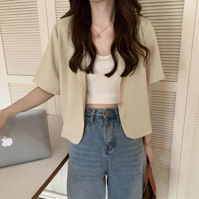 韓国 ファッション Tシャツ 気質 シャツ 薄手 春 夏 オールマッチ した ティーシャツ 半袖 トップス 半袖 ブレザー