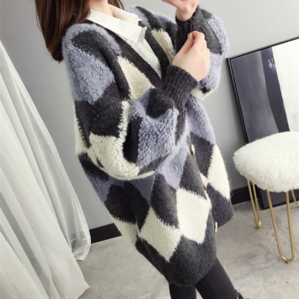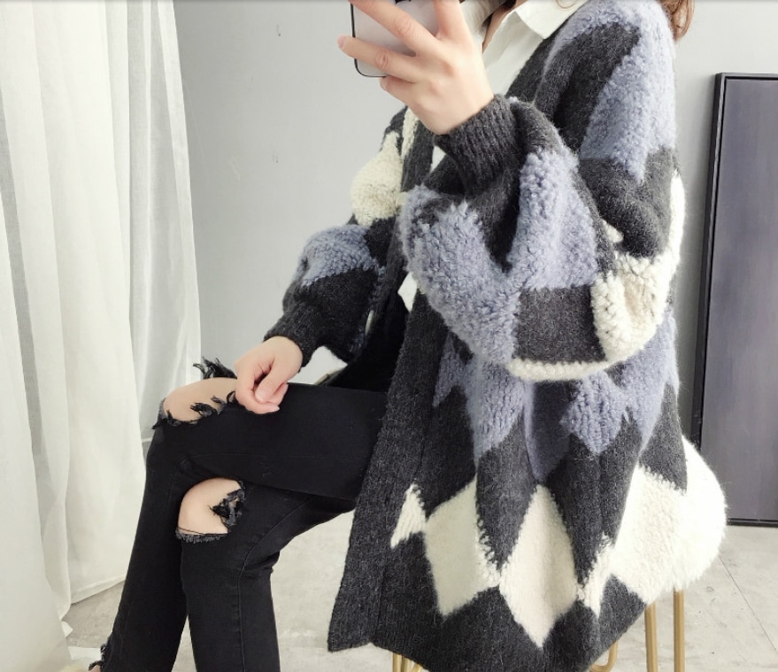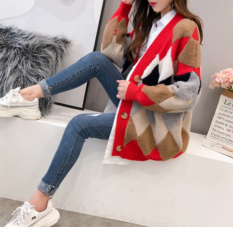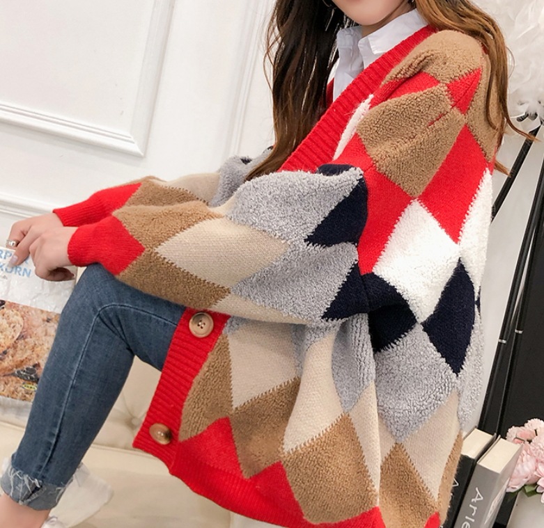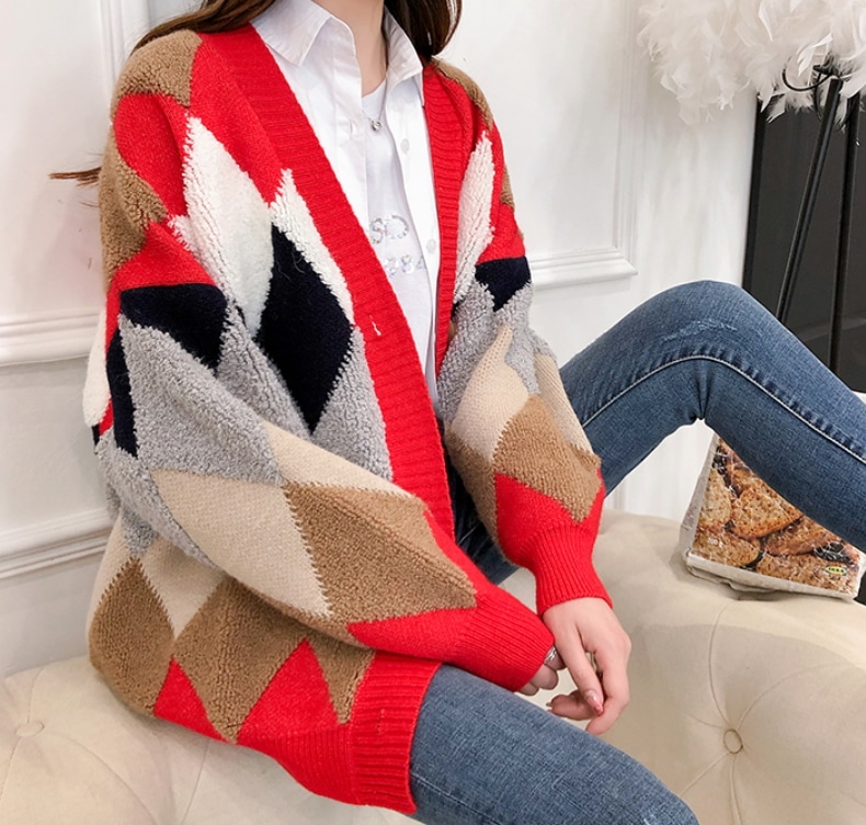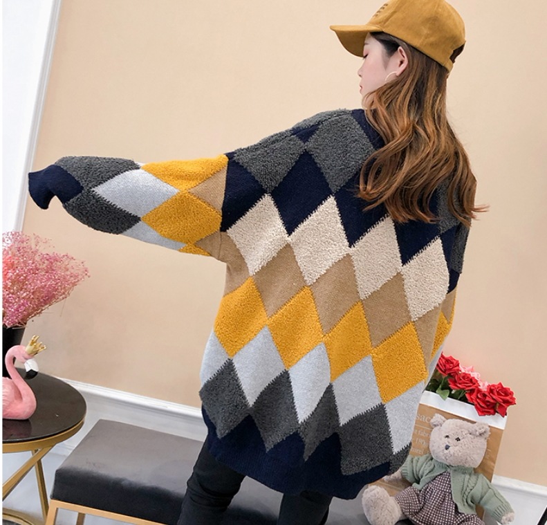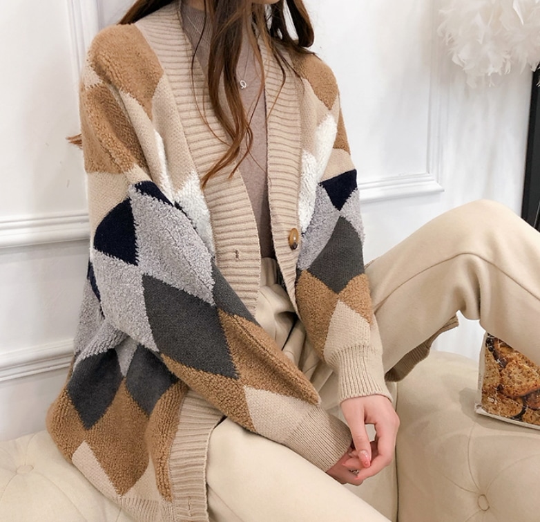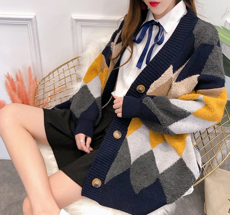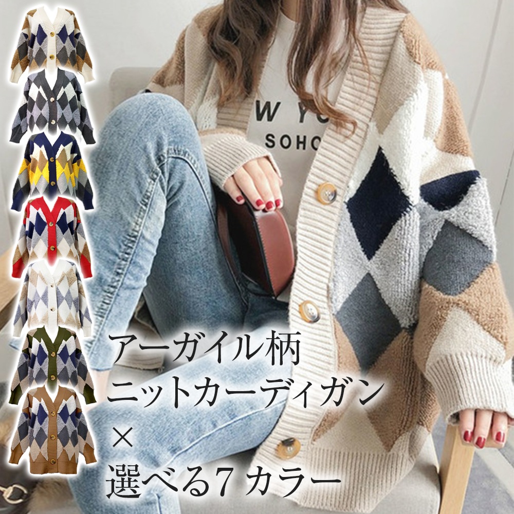 配色 オーバーサイズ ニットカーディガン カーディガン