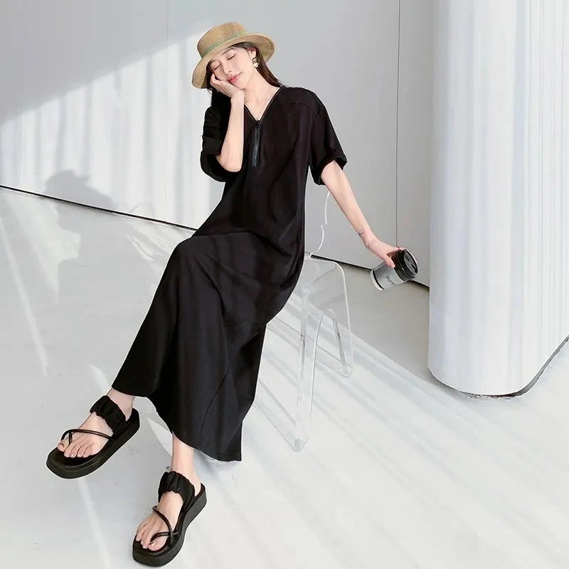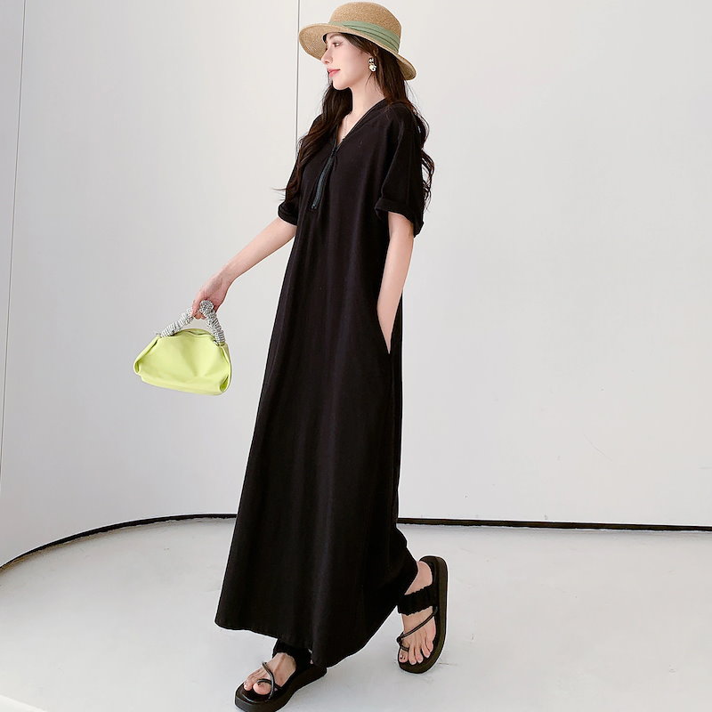 シャツワンピース 夏 レディースロング ワンピース 半袖 夏服 ロング丈マキシ丈 ロングワンピース 体型カバー Tシャツワンピース 無地 ゆったり着痩せ 大きめサイズ 韓国ファッション