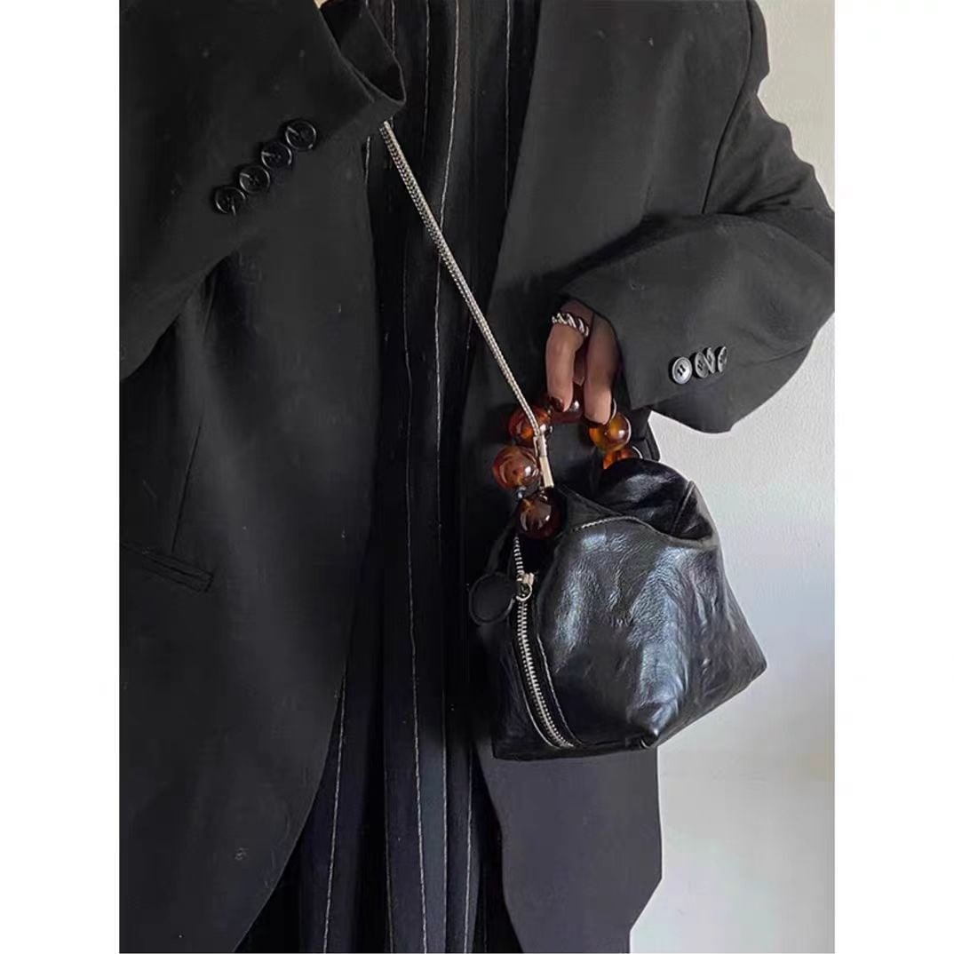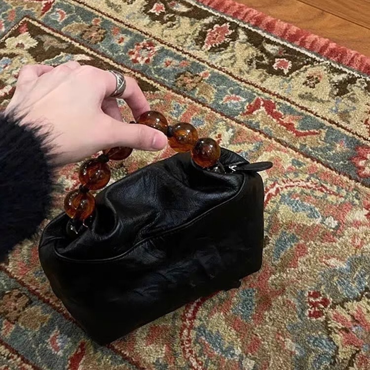 トートバッグ女性新しいシニア感覚ハンドグリップパターン通勤小さなバッグ新しい中国黒ビーズシングルショルダークロスボディ女性バッグ ショルダーバッグ