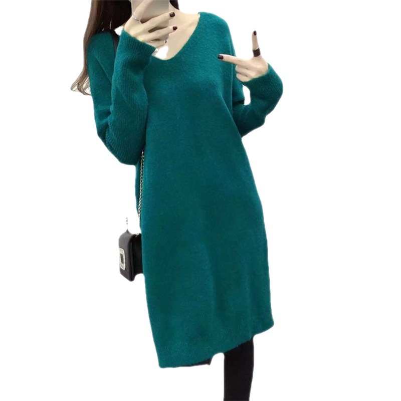 秋冬 ニットカーディガン チュニック セーター Vネック ロング ミーリング お肌に優しい バットウィングスリーブ 流行り スリット カジュアル 百搭 韓国ファッション レトロ 気質