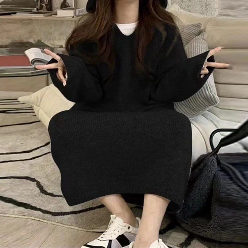 大人気ニットワンピース ドレス 韓国ファッションセーター ワンピース Vネックロングワンピース インナーワンピース ワンピース 秋冬 パーティードレス トップス 長袖 ワンピース