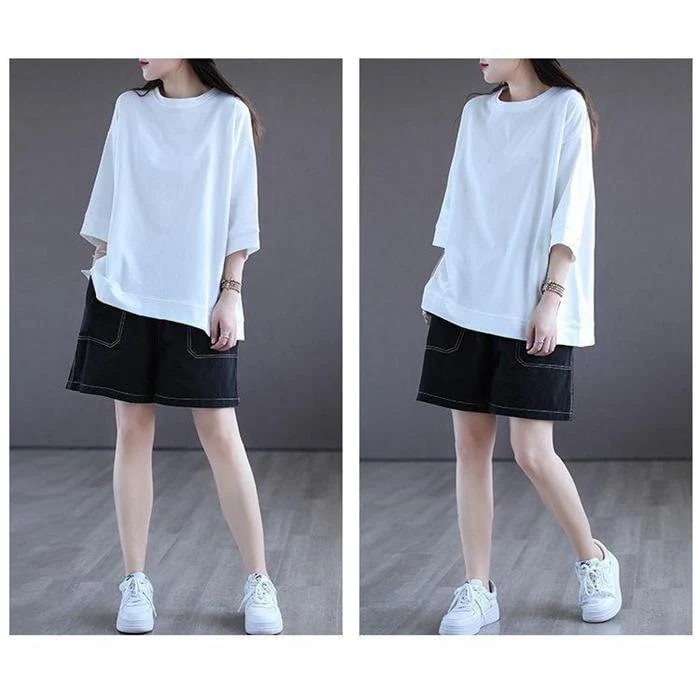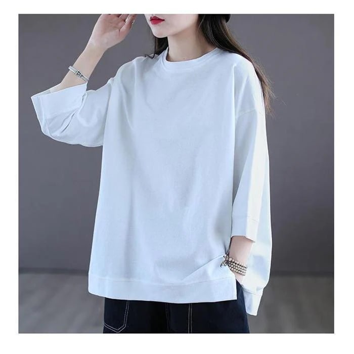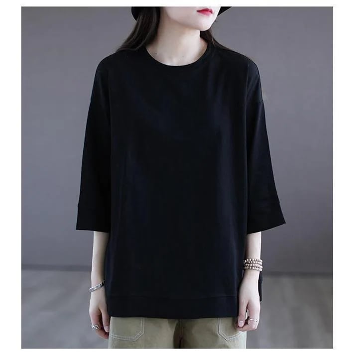 チュニック七分袖Tシャツレディース体型カバー無地クルーネックスリットトップスカットソーカジュアル夏ナチュラル Tシャツ カットソー