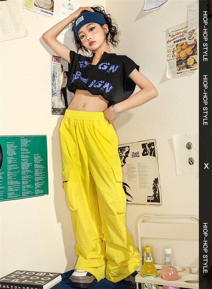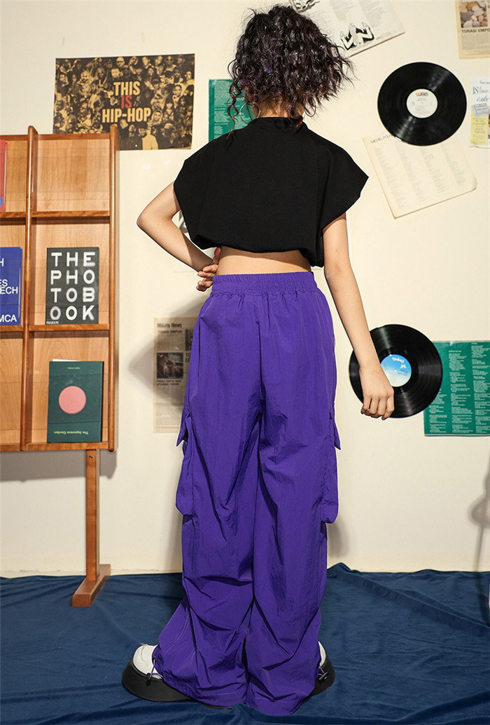 キッズダンス衣装 tシャツ ダンス衣装 トップス 黒 ブルー 紫 黄色 ダンス 衣装 ヒップホップ キッズ カーゴパンツ 子供 ダンスズボン カーゴ パンツ hiphop k-pop ショート丈 トッ