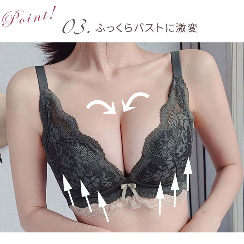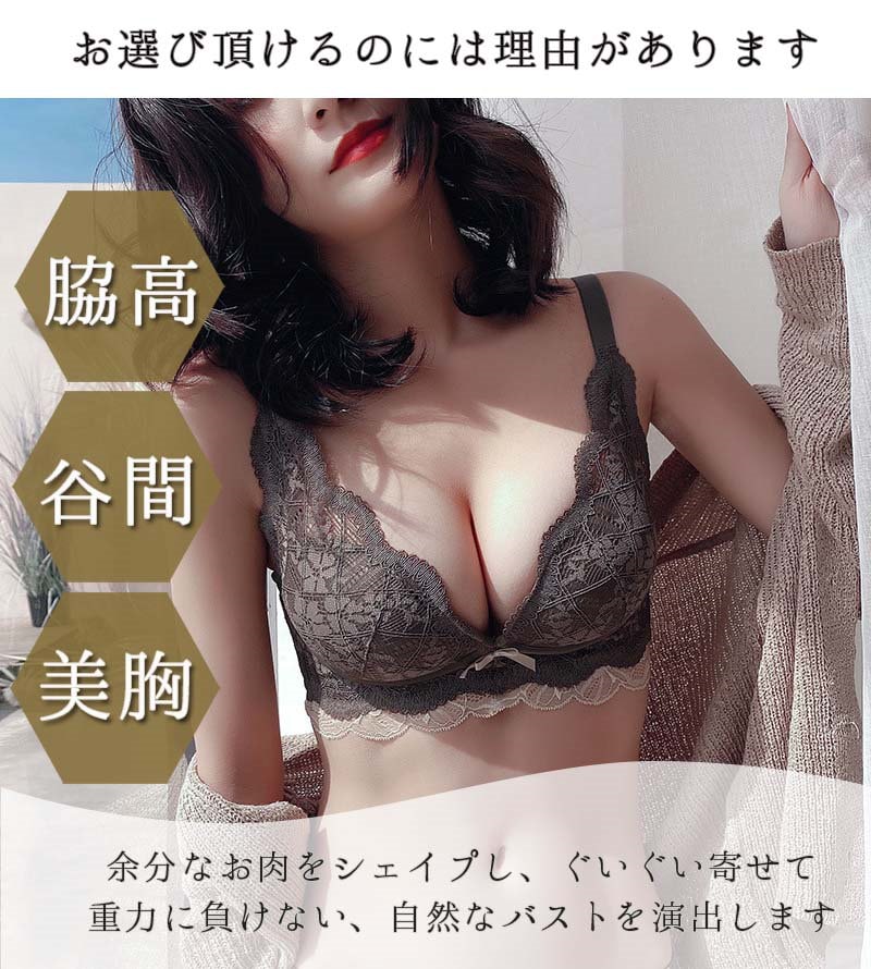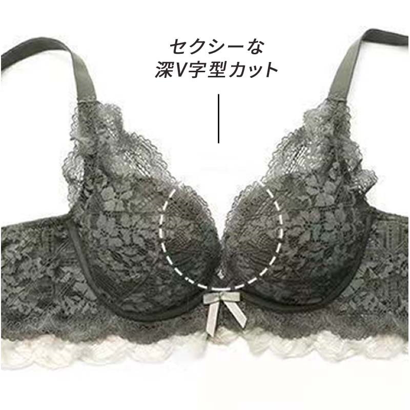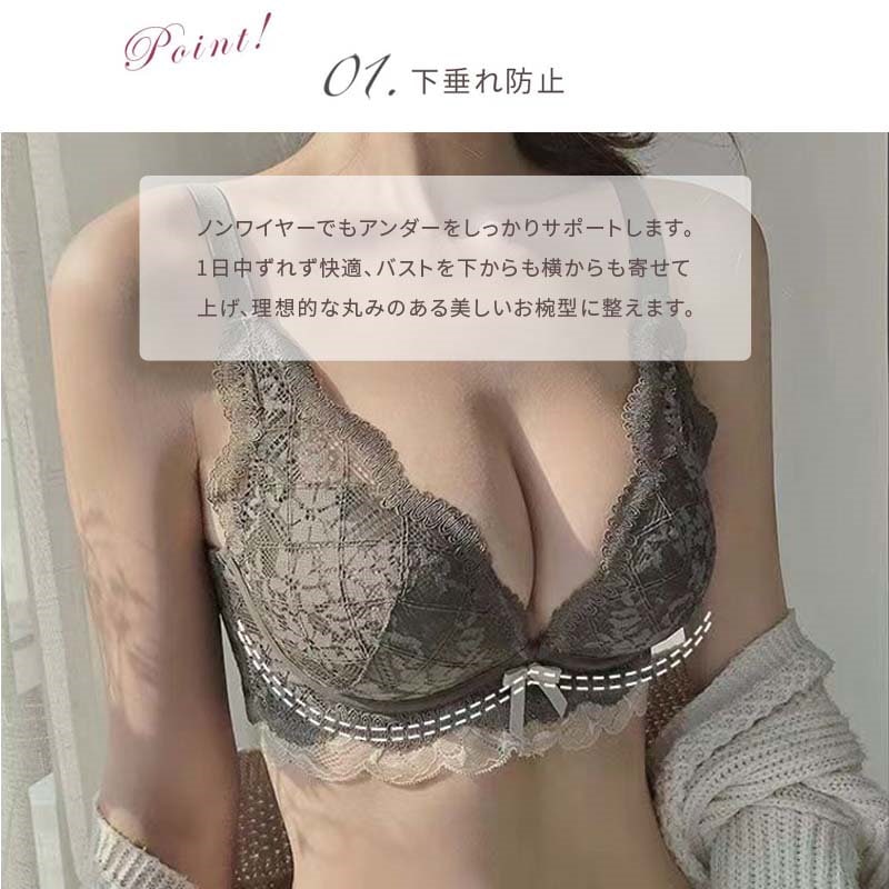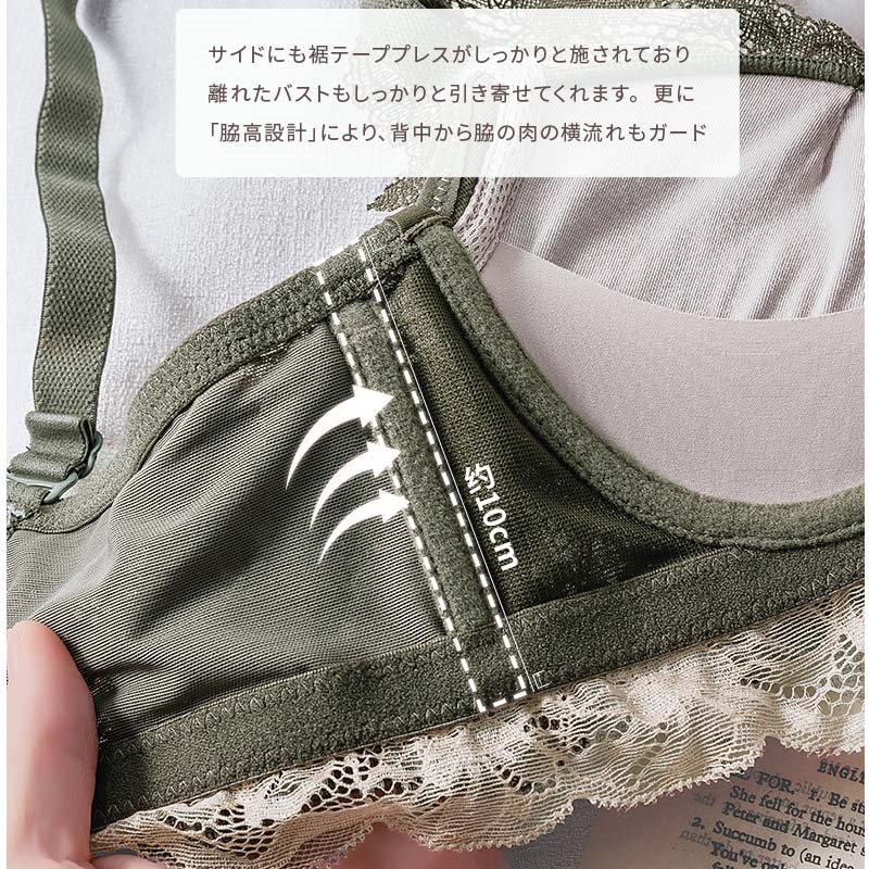 脇高でしっかり補正&谷間 ノンワイヤー ブラジャー ショーツ セット レディース ブラ フリル レース 下着 上下 SET インナー ショーツ ブラショーツ ブラセット 谷間