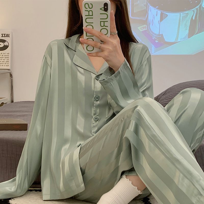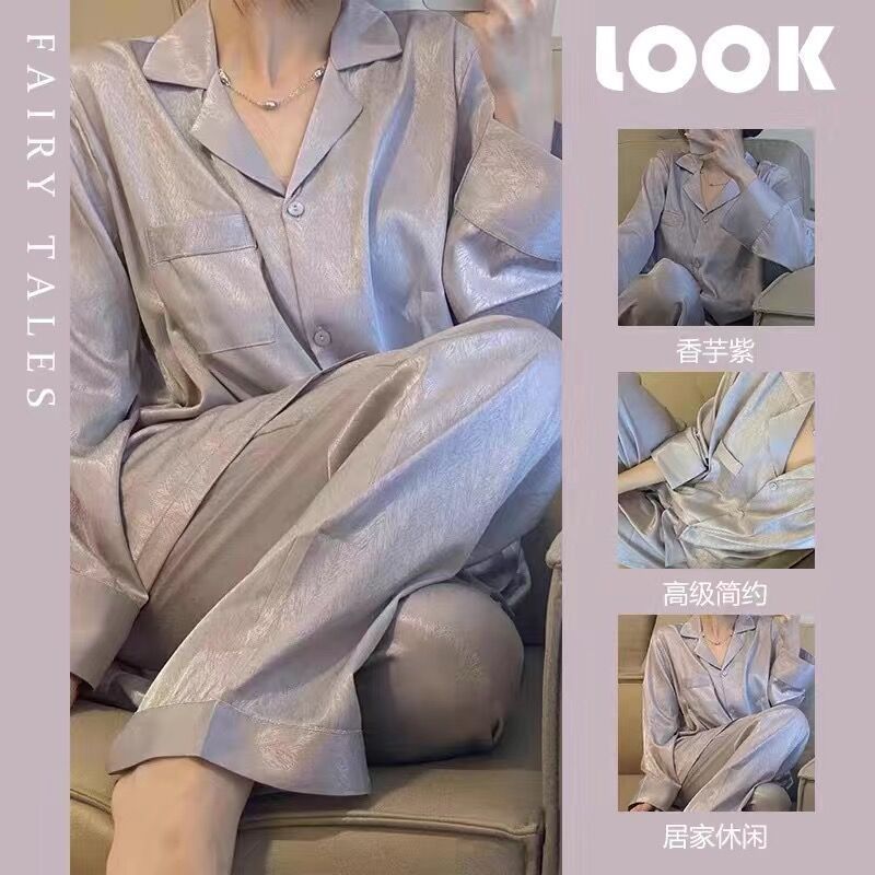 パジャマ ルームウェア2023年新作アイスシルクパジャマ春秋長袖夏薄手高級感シミュレーションシルクホームウェア レディース 韓国ファッション