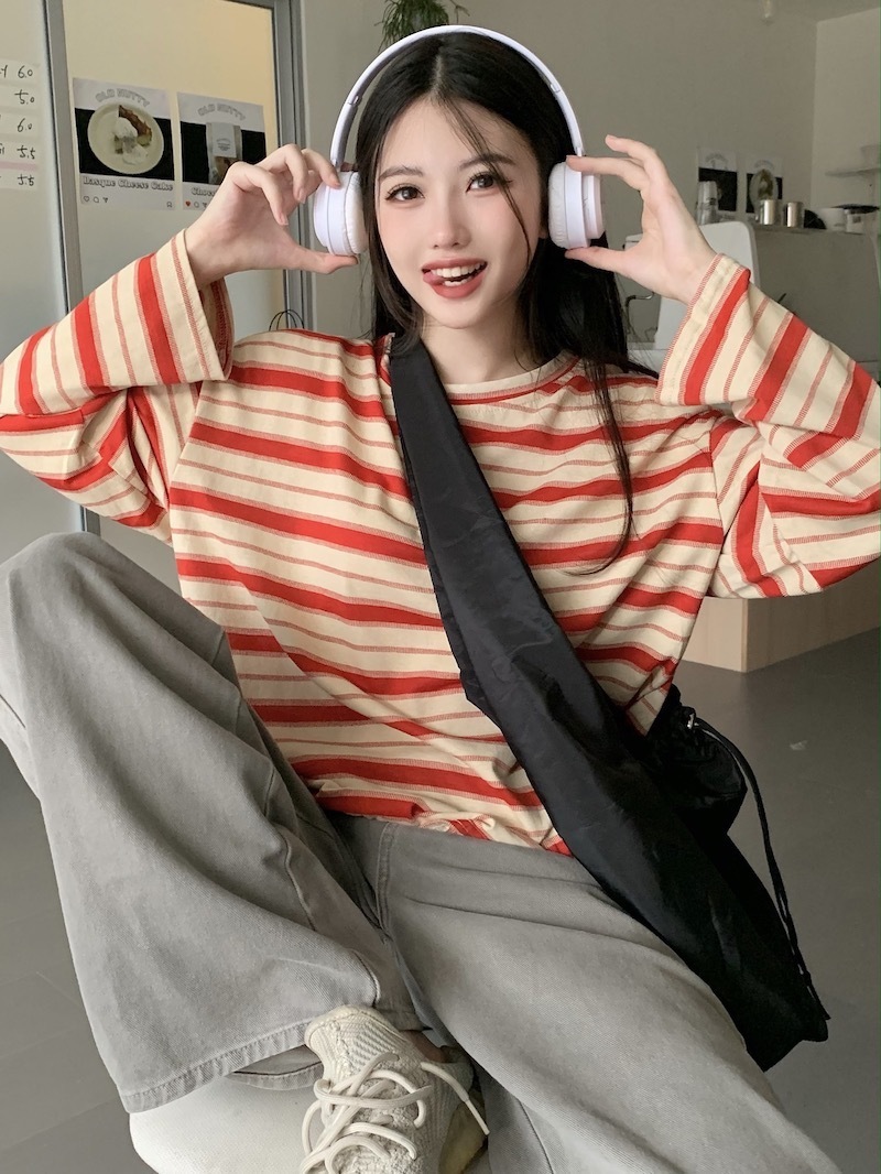 ボーダー Tシャツ レディース 長袖 トップス ボーダーTシャツ カットソー ティーシャツ クルーネック ゆったり 柔らかい 保温 耐久性 伸