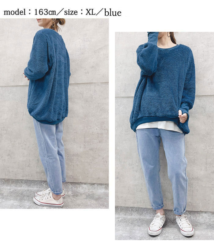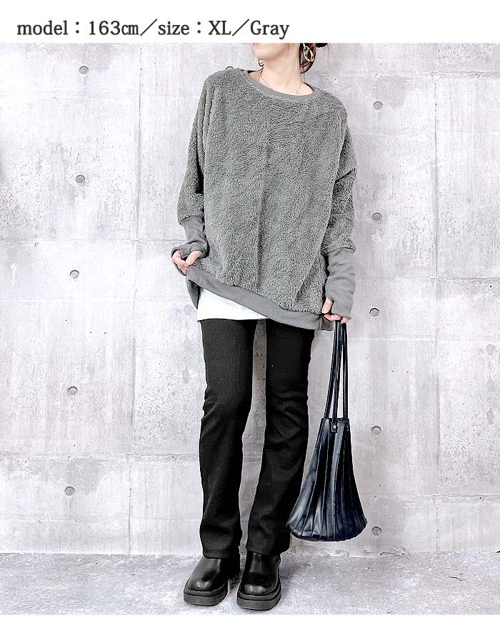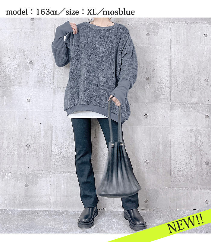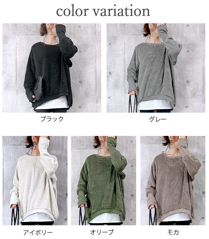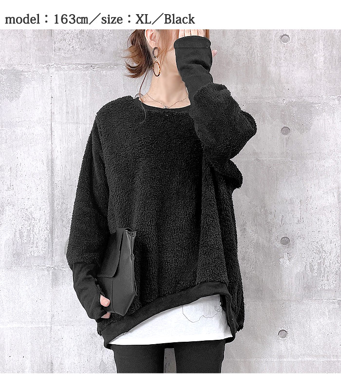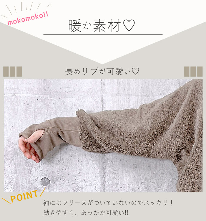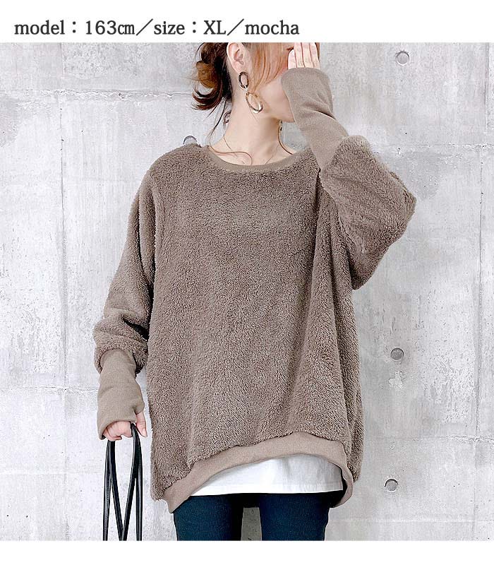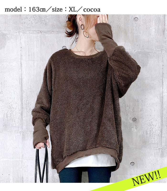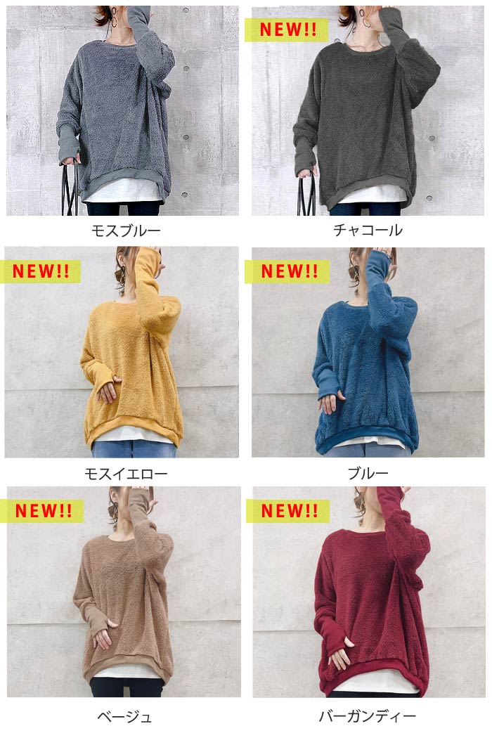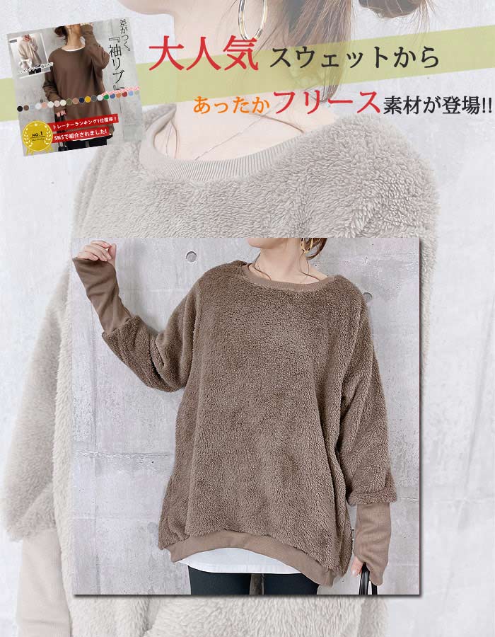 フリース ボア トレーナー トップス レディース 大きいサイズ 韓国 リブ長 おしゃれ ルームウェア 指穴[郵3]^t958^ トレーナー
