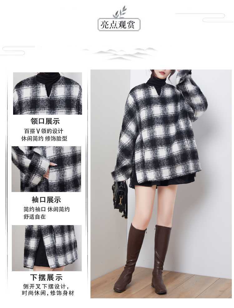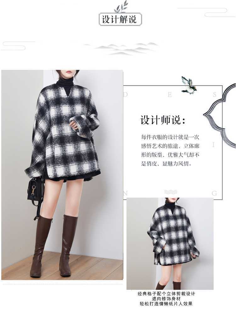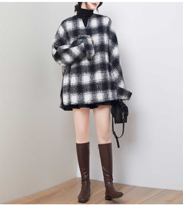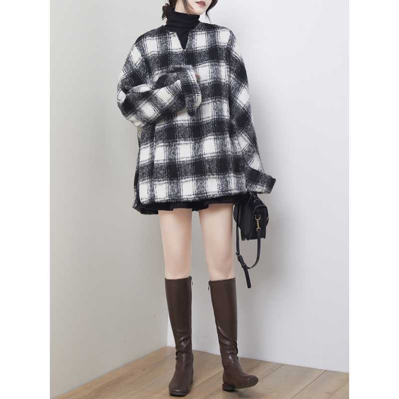 2024秋冬新品 黒白格子 チェック アウター 大きいサイズ 体型カバー レディース コート メガ割 ツイードジャケット