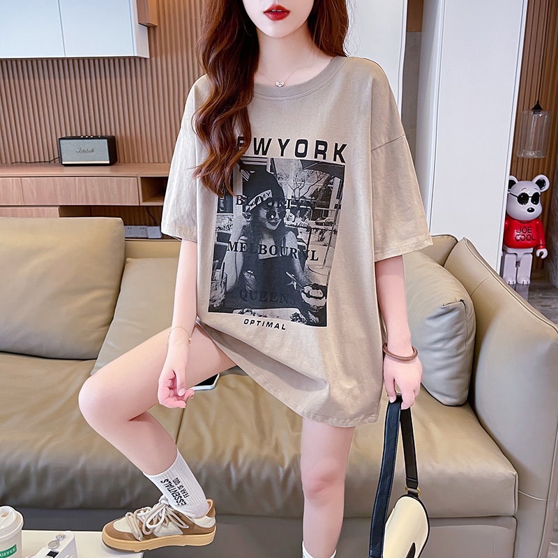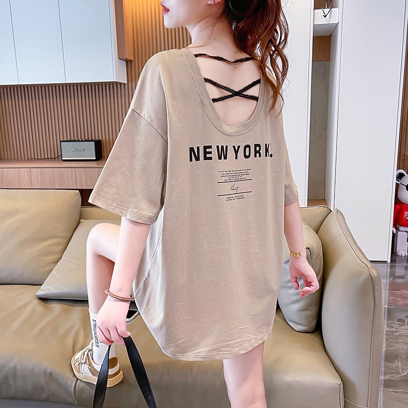 純綿 トップス 半袖 韓国ファッション 透ける 夏服 Tシャツ カジュアル ゆったり レディース服 ブラウス ロングタイプ