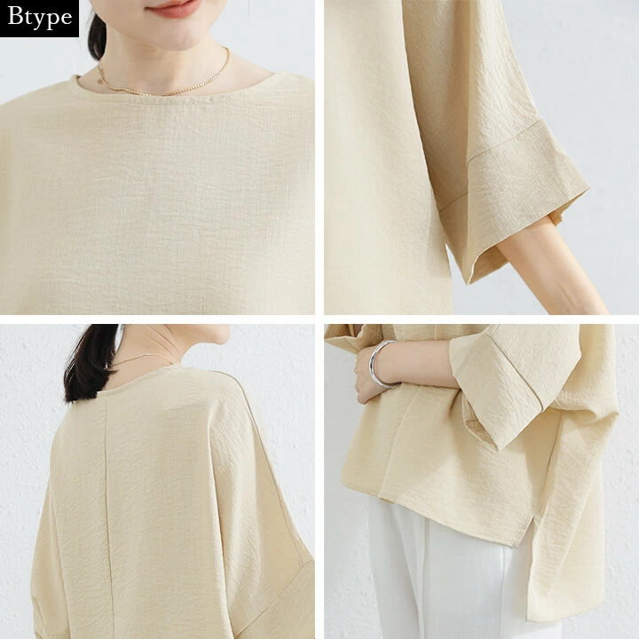 オーバーサイズ ブラウス レディース トップス リネン リネン風 夏 春 女性 ゆったり 二の腕カバー カジュアル 快適 透け感 大人 上品 シンプル ラフ きれいめ ゆったり 半袖 抜け感 20代