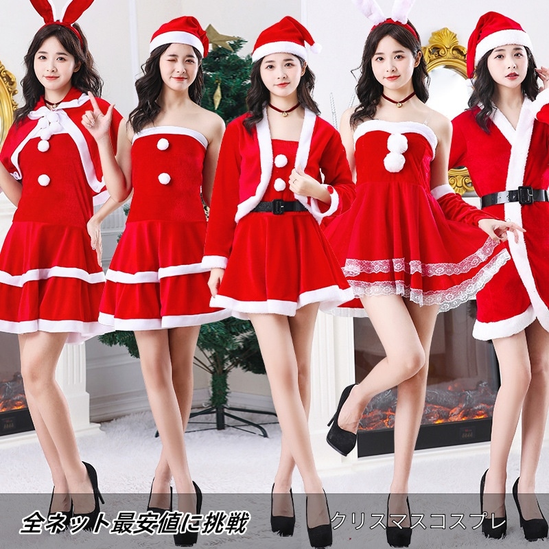 20245点 4点 3点 2点セットクリスマスコスチューム サンタコスプレ 仮装 ワンピース セット パーティーワンピース サンタ コスプレ