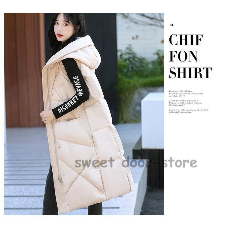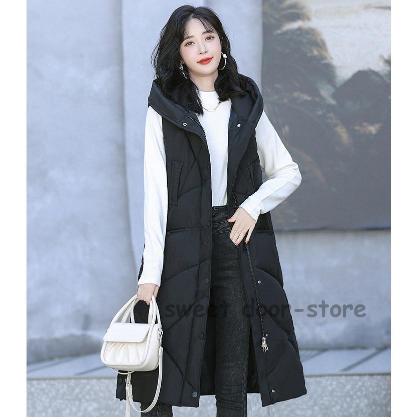 ベスト レディース 中綿ベスト ロングベスト ダウンベスト トップス フード付き 前開き 暖かい 防寒 秋冬 アウター 軽量 着痩せ ベスト