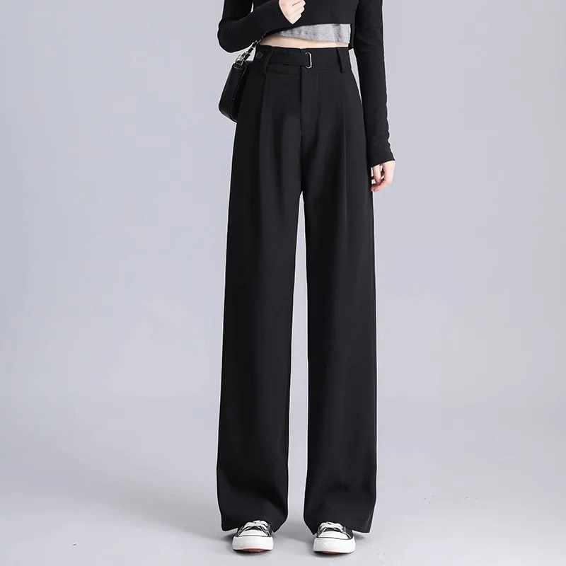 ハイウエスト 美脚 脚長 ストレートパンツ レディース ボタンストラップ ワイドパンツ 女性 ボトムス ワイド パンツ ハイウエストパンツ ズボン 長ズボン ロングパンツ