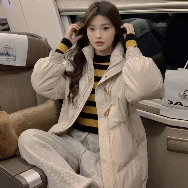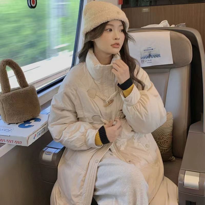 優しい牛角ボタンミディアムダウン綿入れ2024新型小柄カレッジ風綿入れ冬コート女 その他 アウター