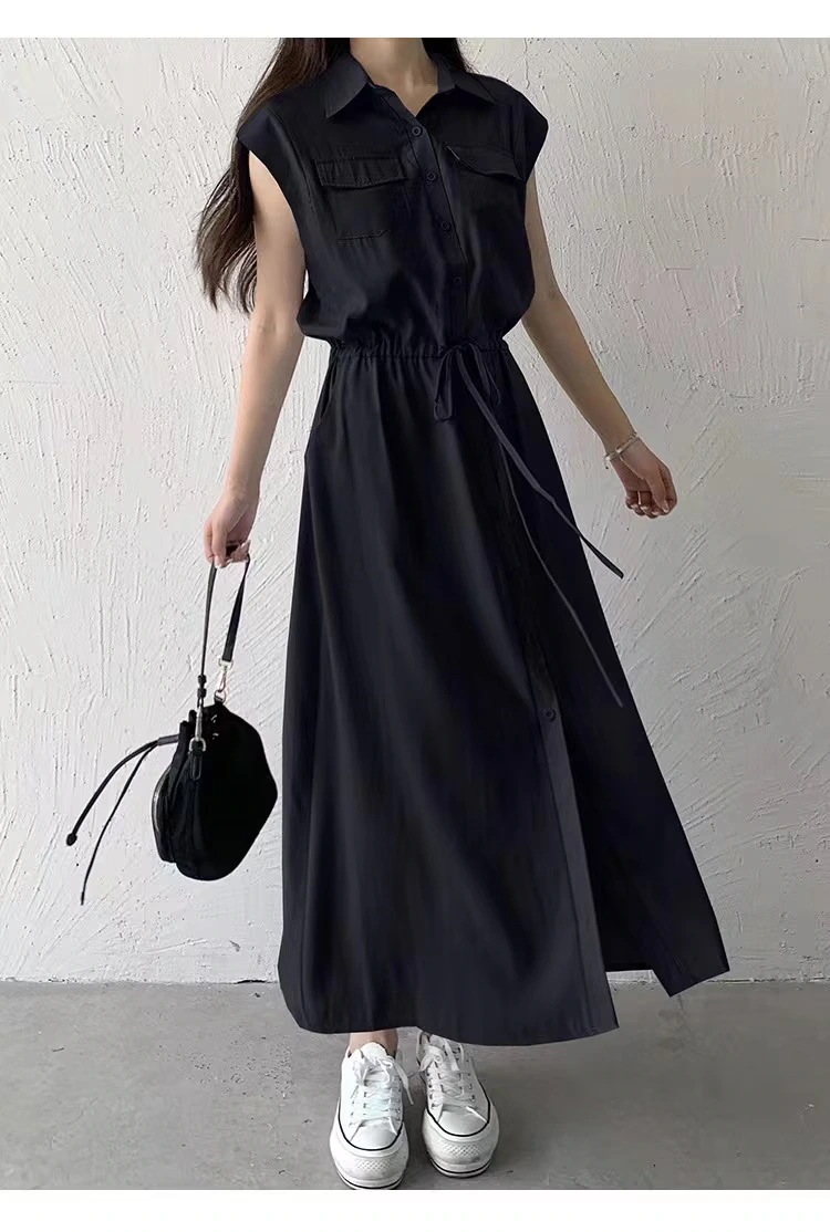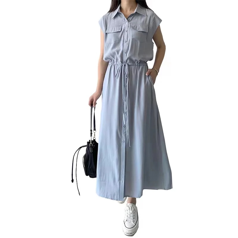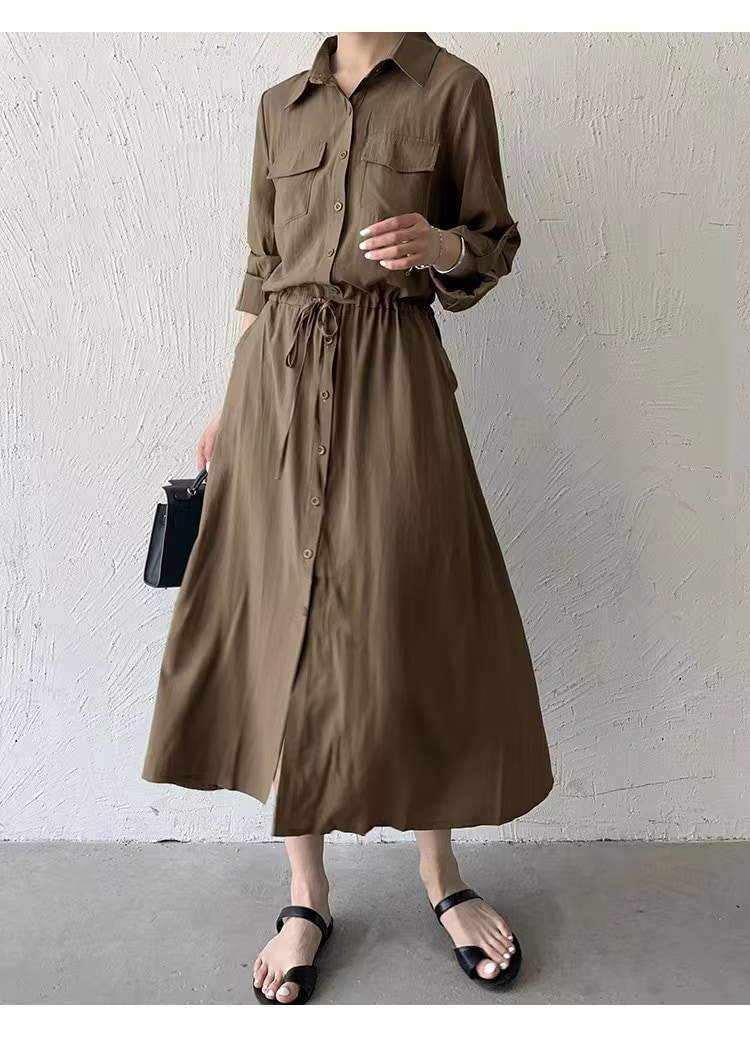 新作 長袖 半袖 2タイプ 夏 ワンピース ポケット付き 開き襟ワンピース 大人 ロングワンピース レディースワンピース 新款 日系 セミロング カジュアル ワイシャツ