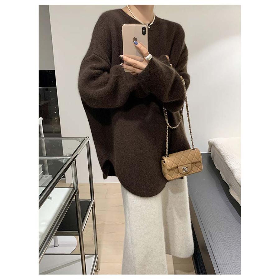 大人気 上品 ふわふわ ニット 長袖 レディース シャギーニット セーター 丸首 クルーネック シャギー もこもこ トップス 秋 冬 流行 ゆったり 大きめ オーバ