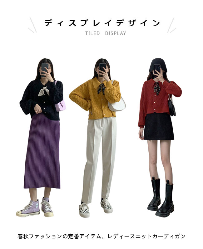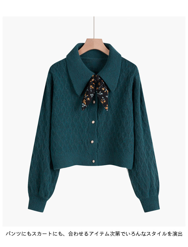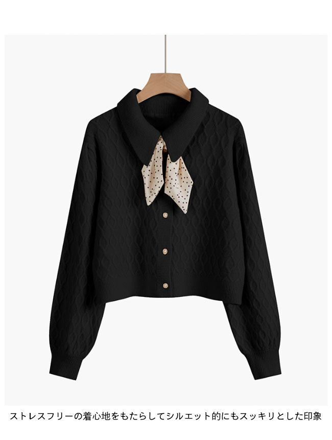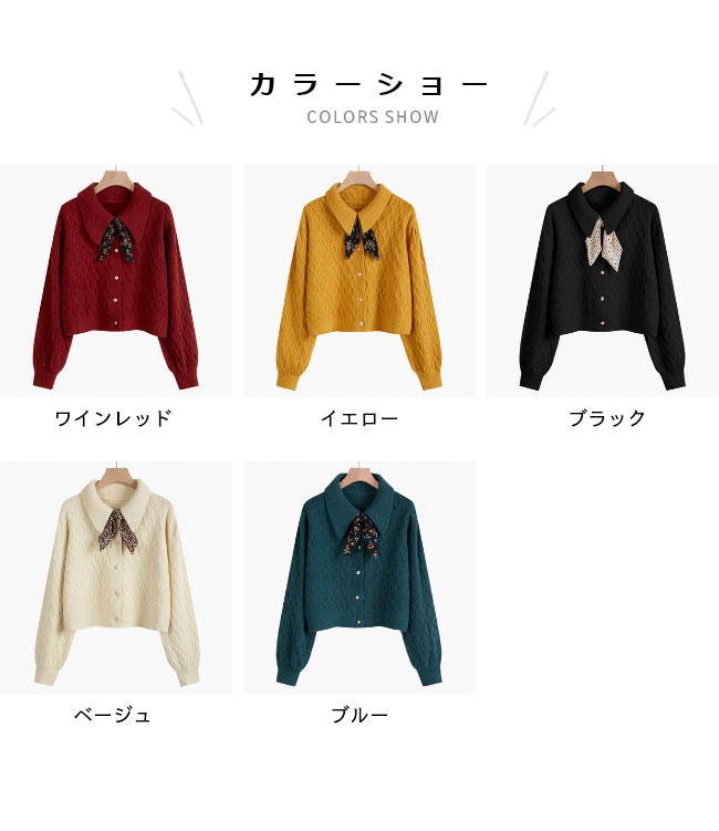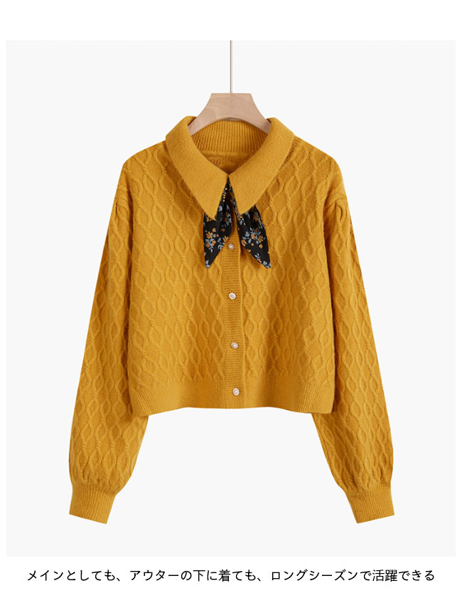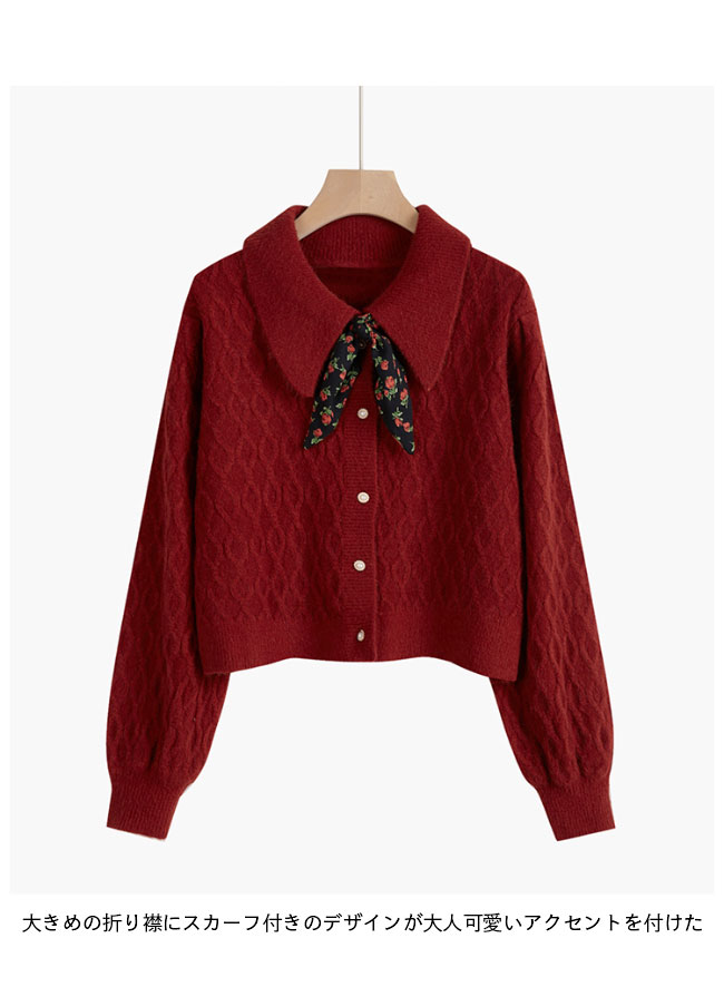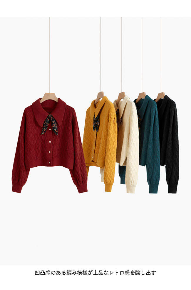 ニットカーディガン ショート レディース ニットセーター 前あき レトロ コーディガン スカーフ付き おしゃれ ニット トップス 長袖 春 秋 冬 ワインレッド イエロー ブラック ベージュ ブルー