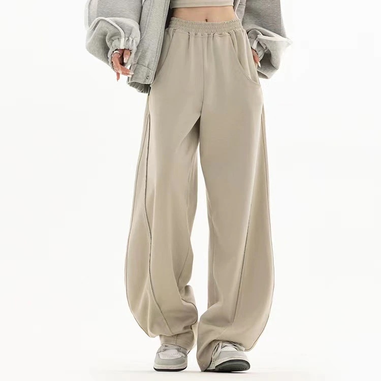 ワイド カーブパンツ レディース パンツ ワイ ドパンツ スウェット ウエストゴム 脚長効果 美脚ライン 秋 冬 ゆったり 体型カバー ジャージ スウェット センターシームコクーン パンツ