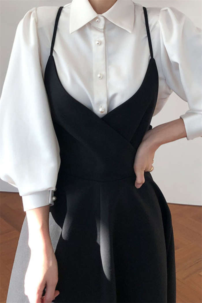 サロペットワンピース ジャンパースカート 黒 ワンピース ロング レディース サスペンダー おしゃれ ロング丈 ゆったり Aライン きれいめ シンプル かっこいい バッククロス カシュクール Vライン