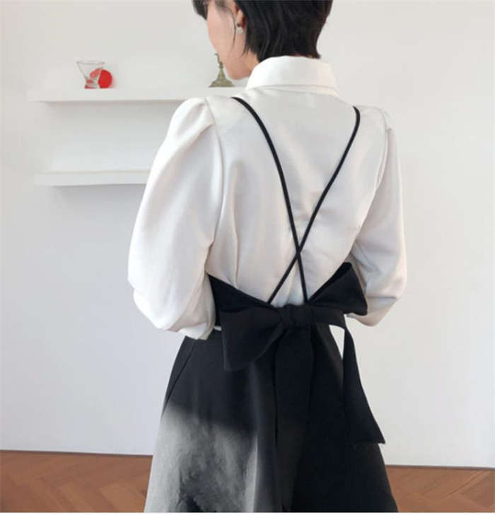 シアースリーブ ドッキングシャツ ボウタイシャツブラウス