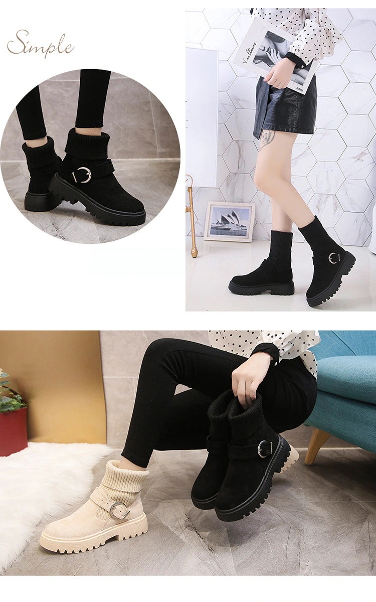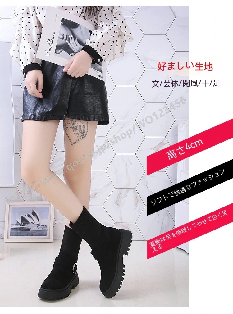 ソックスブーツ レディース ストレッチ 厚底 ショートブーツ 黒 ブーツ 歩きやすい ボア ショートローヒール きれいめ ソックスシューズ ワークブーツ 厚底 ソックス風 2wayニットブーツ バック
