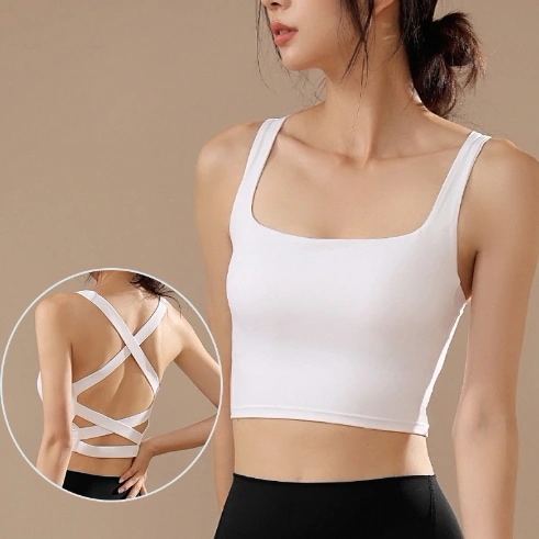46大好評パッド入りの正方形の首のヨガのブラが付いている適性を動かす十字の背部スポーツの下着の女性の反衝撃のウエストのタンク トップ レディーススポーツインナー