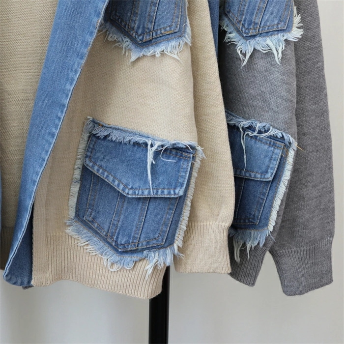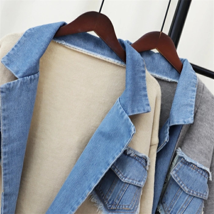 デニム 切り替え ニットカーディガン カーディガン 羽織り アウター バイカラー カーデ ショート丈 異素材 ドッキング コート レディース ジャケット あったか Vネック ショート ゆったり 柔ら