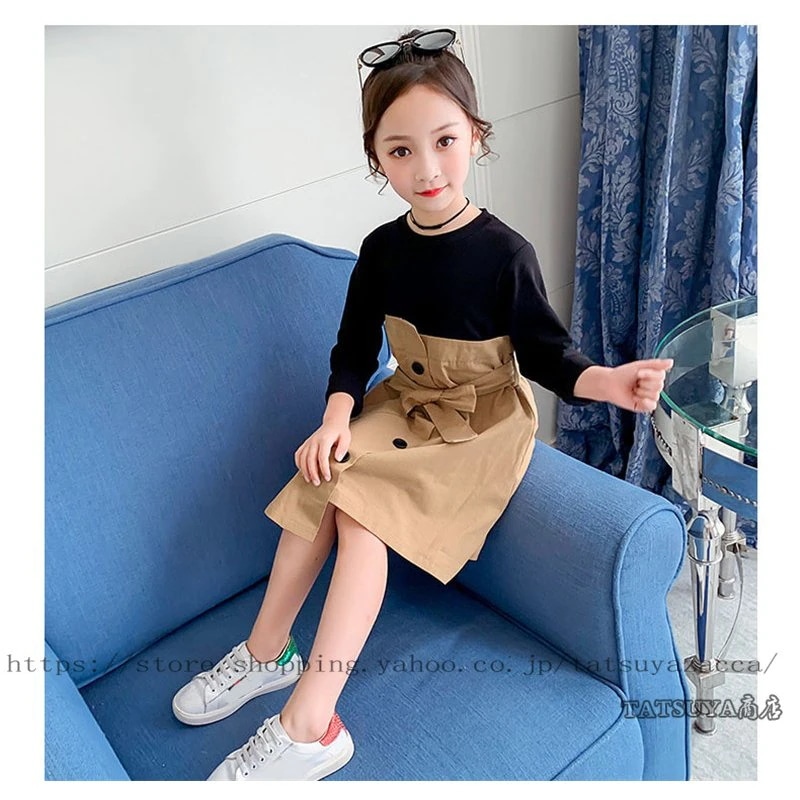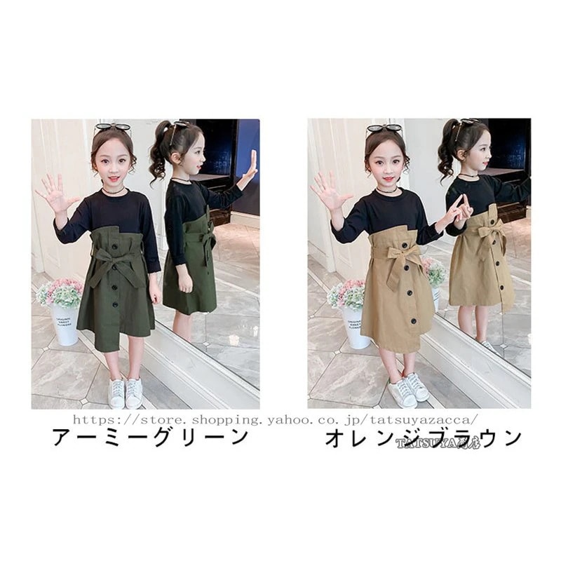 切り替え ワンピース 秋新作 膝丈 蝶結び ワンピ ドッキング 春秋 演奏会 子供服 女の子 女児 ワンピース ドレス