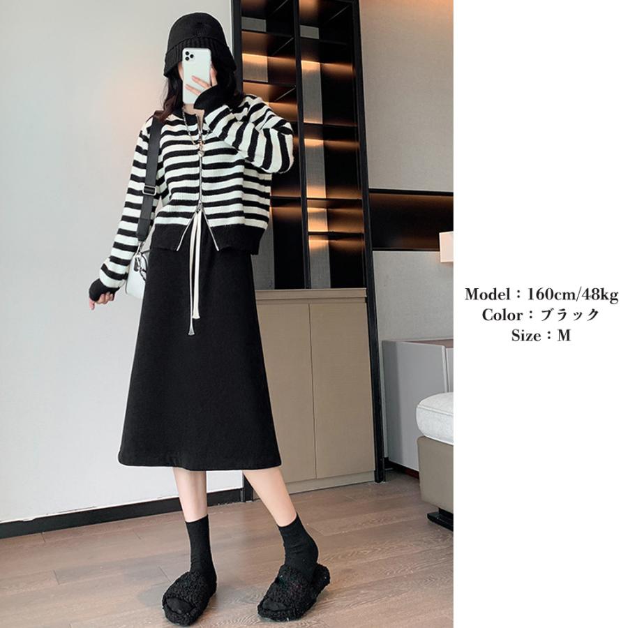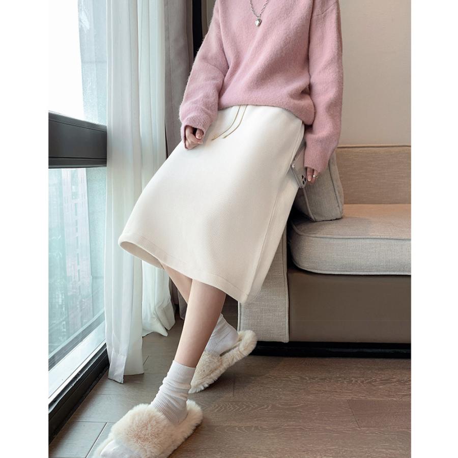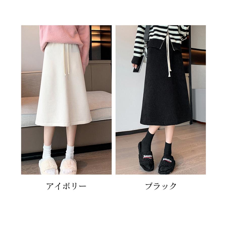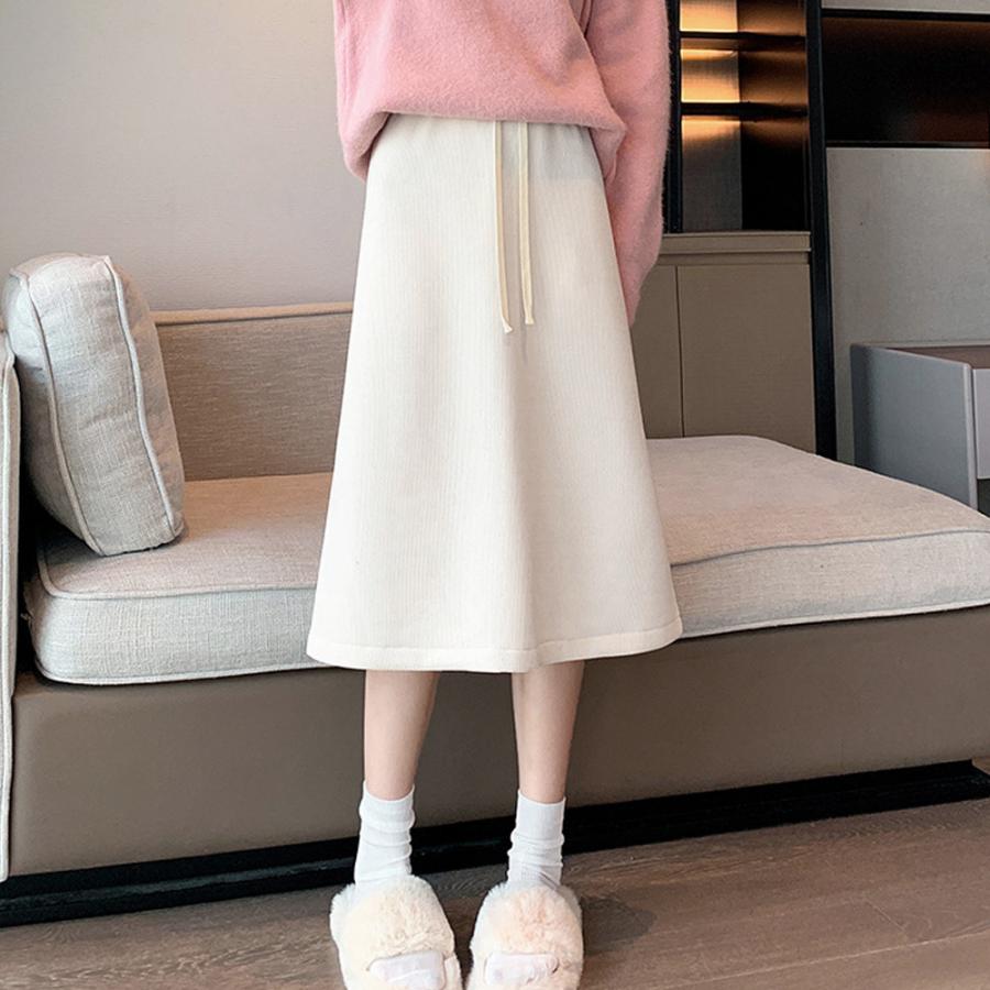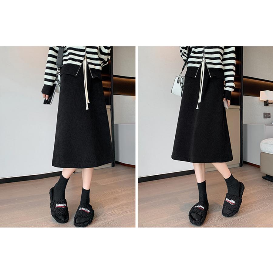 裏起毛スカート ひざ丈 ハイウエスト 冬 ロングスカート