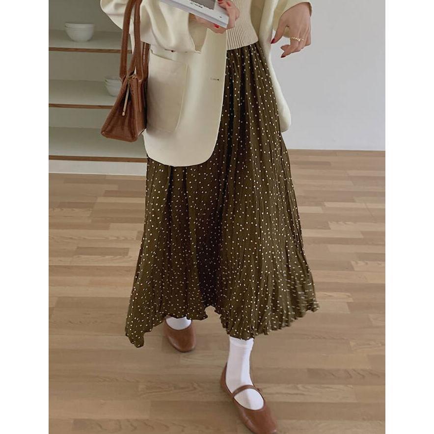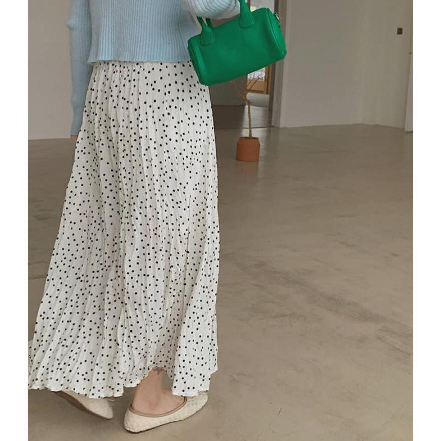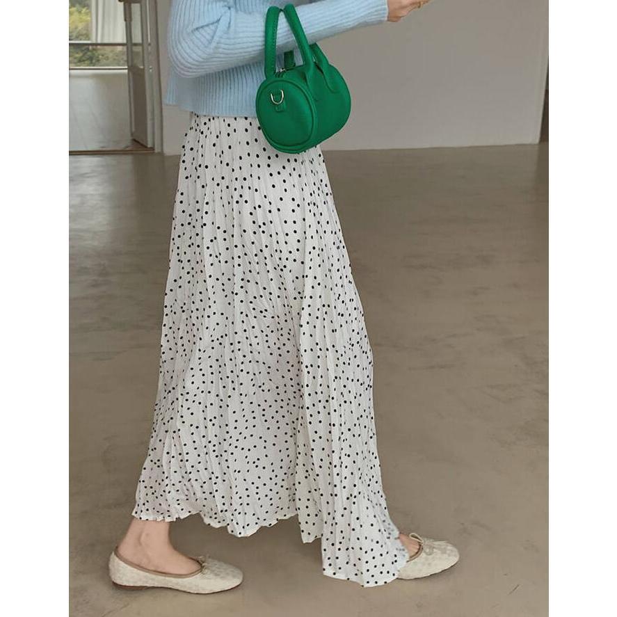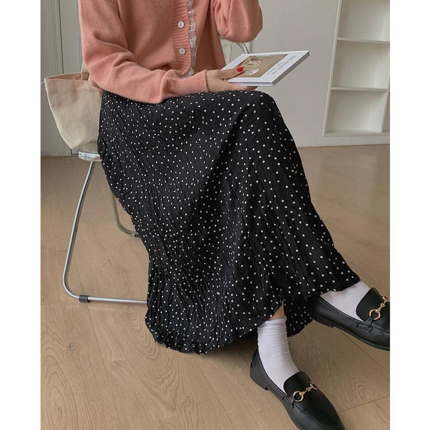 スカート レディース ロング ボトムス 春夏秋 春 夏 秋 レディーススカート フレアスカート ロング丈 ドット aライン 総柄 シワ しわ 体型カバー