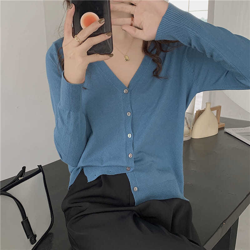 人気なリブニット ニット カーディガン レディース 春秋 新作 韓国ファッション 気質 百掛け 長袖 トップス カーディガン