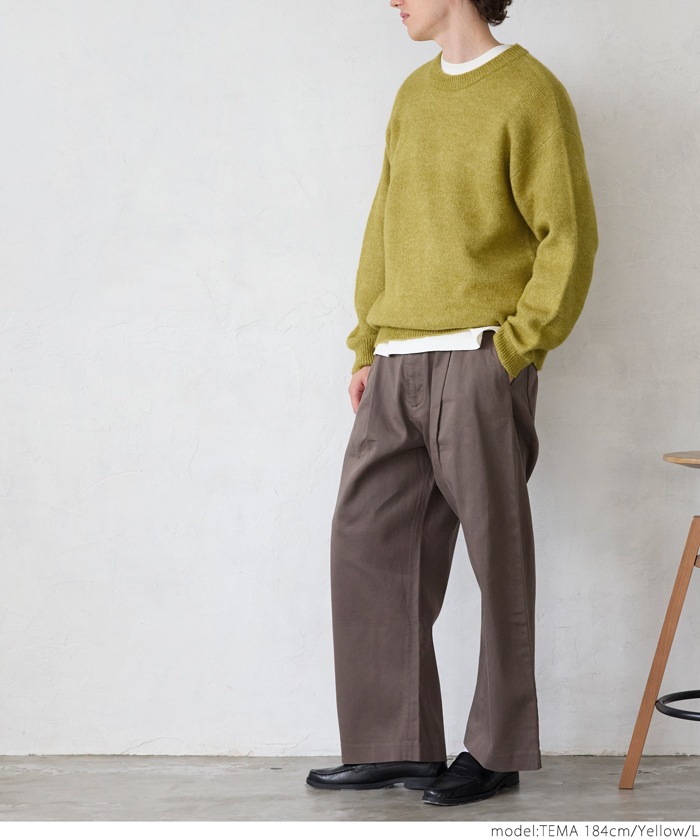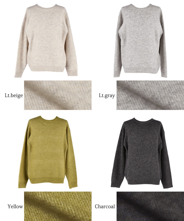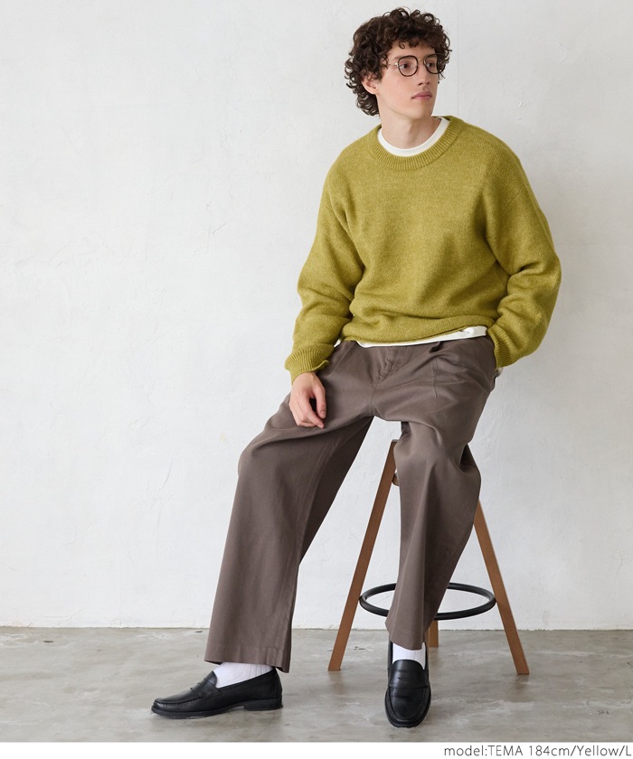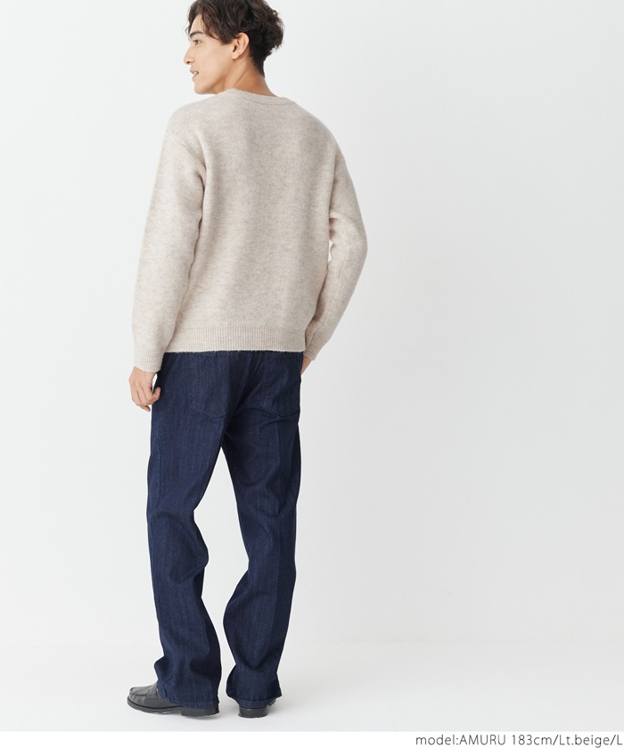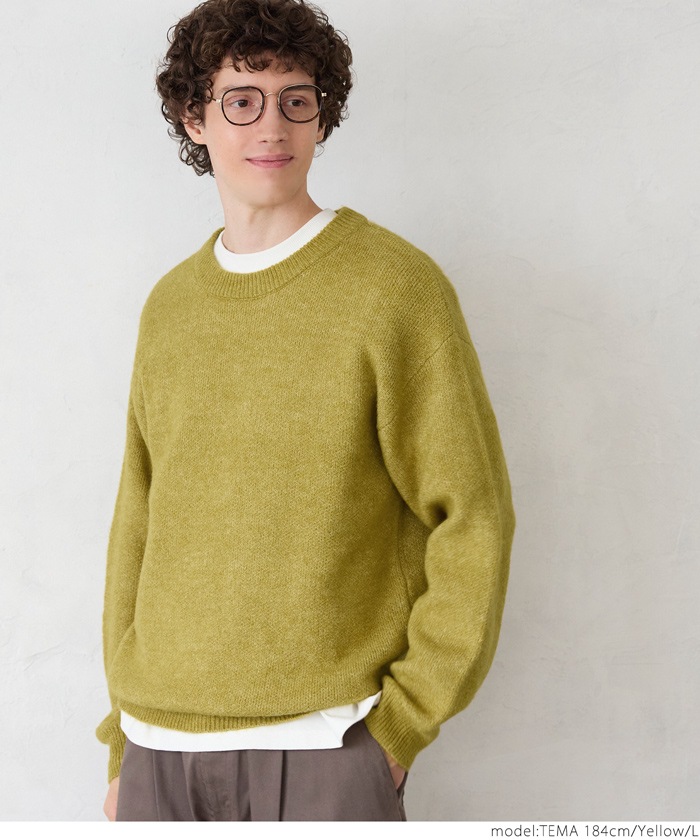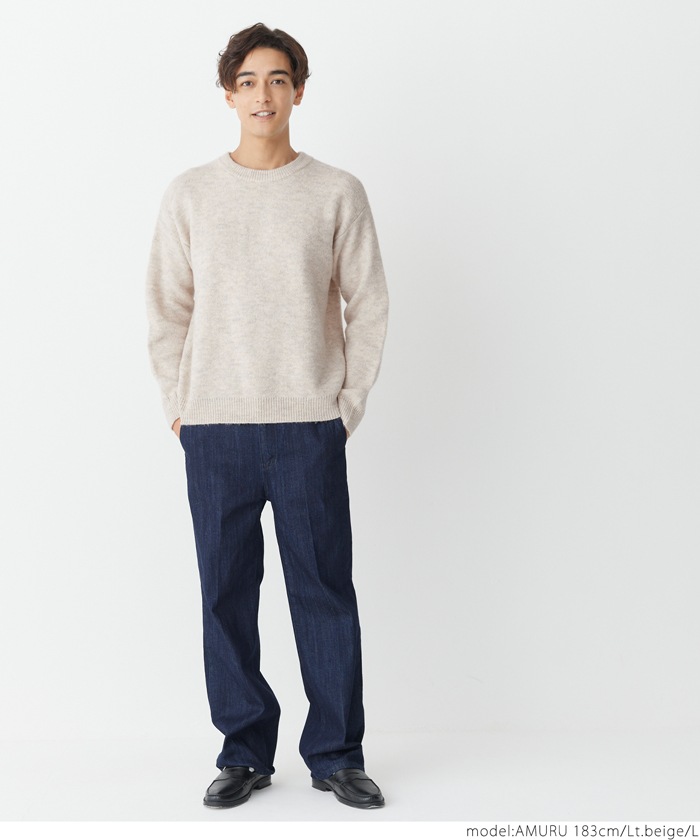coca モヘア風クルーネックリラックスニットトップス メンズ ニット セーター