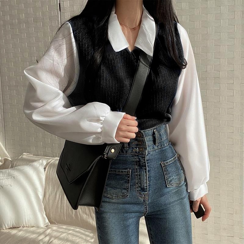 シアースリーブ ドッキングシャツ ボウタイシャツブラウス