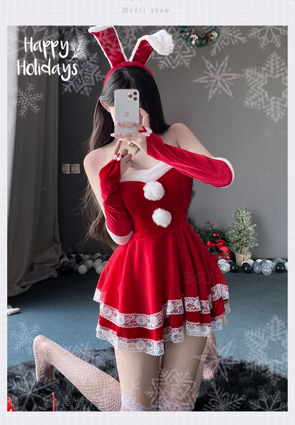 B4U サンタコスプレ クリスマス コスプレ レディース 3カラー コスチューム かわいい プレゼント モフモフ 服 冬 クリスマス