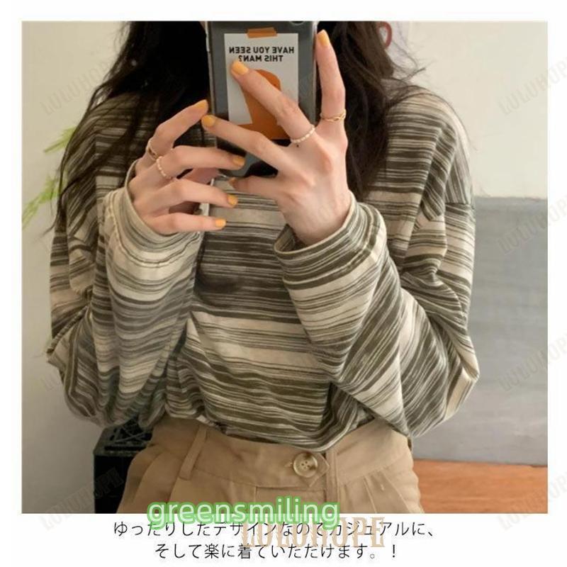 インナー Tシャツ トップス 長袖 ボーダー クルーネック 春服 普段着 可愛い カットソー カジュアル 秋服 ゆったり お洒落 レディース