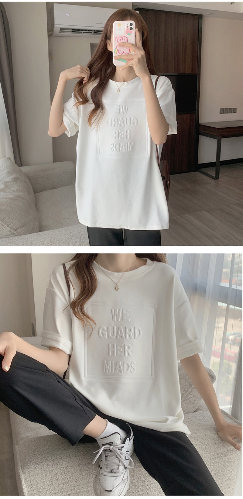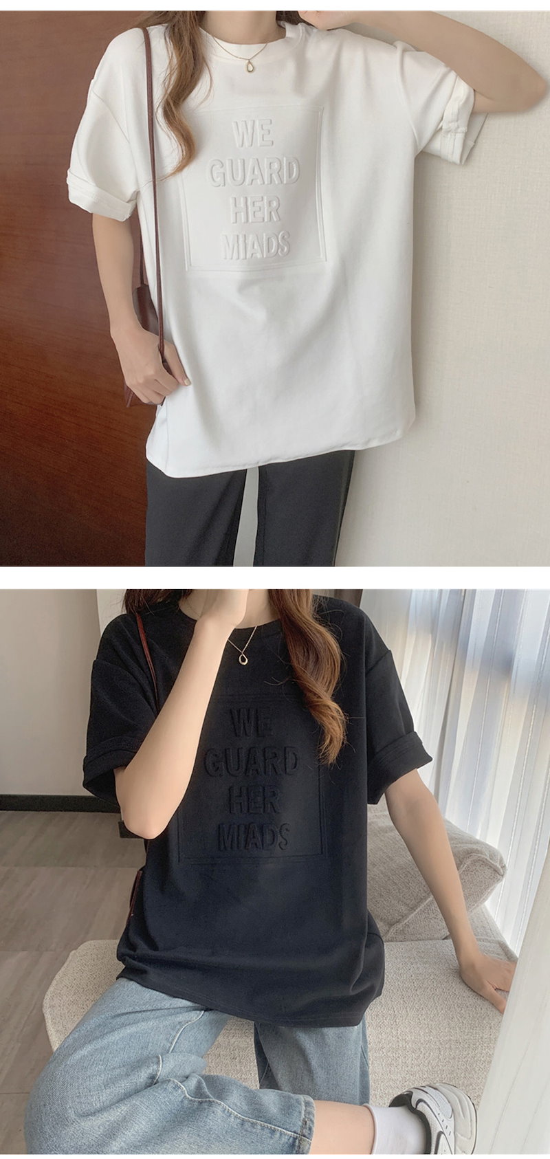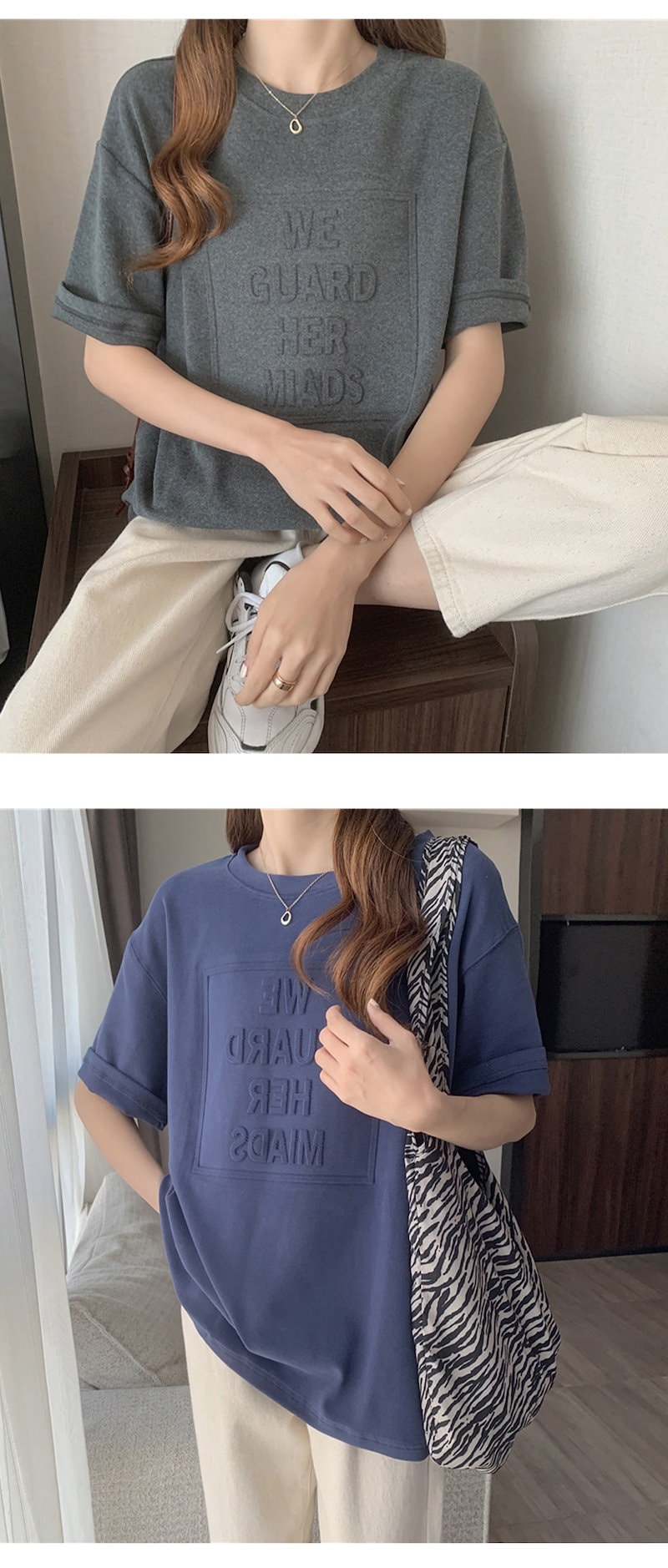 立体的なロゴが可愛い エンボス加工ロゴTシャツドロップショルダー レディース Tシャツ 半袖 袖あり 涼し気な着心地 しっかりした生地 ゆっ