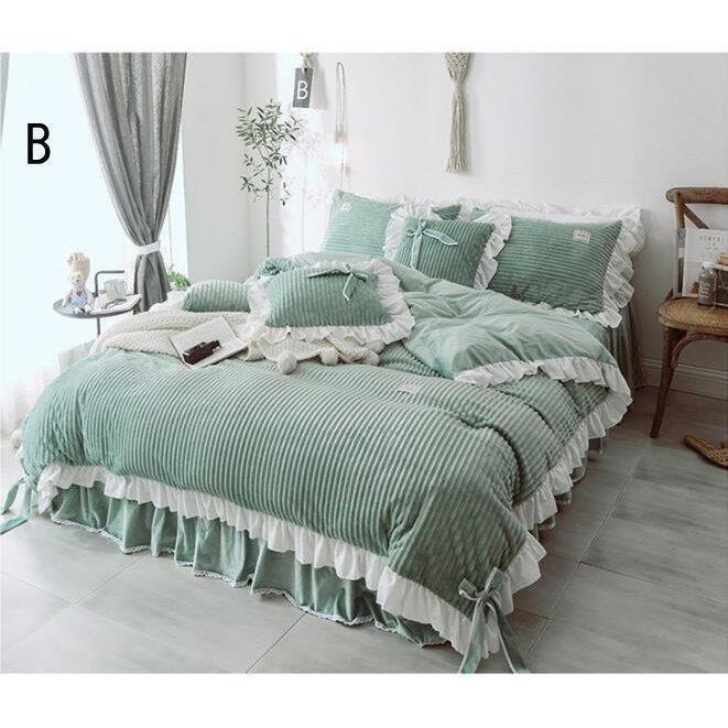 布団カバー 掛け布団カバー 姫系 ベッドスカート 秋冬 フランネル 4点セット 暖かい 新生活 寝具カバーセット ベッド用品 おしゃれ 敷き布団カバー 枕カバー