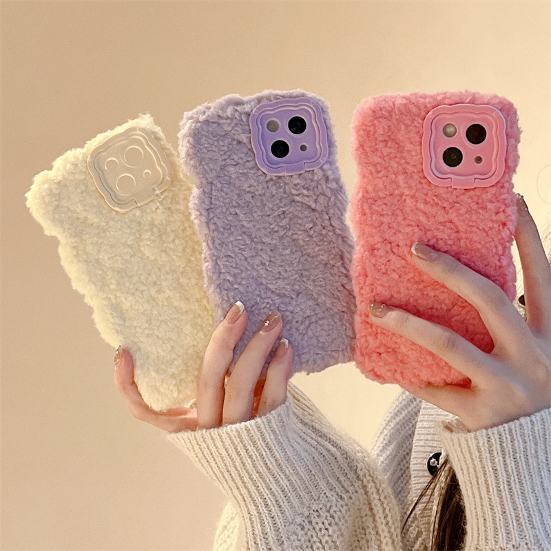 秋冬の新型適用リンゴ16promaxぬいぐるみ携帯ケース15キャンディー色羊小毛14コンタクトレンズ13 iPhone 12 Pro Max