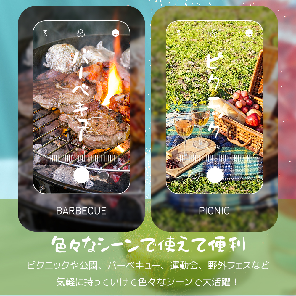 【色々なシーンで使えて便利】ピクニックや公園、バーベキュー、運動会、野外フェスなど気軽に持っていけて色々なシーンで大活躍! これ一つあれば、どこでも快適空間をつくり出せちゃいます 気になる日焼け対策にも最適です。