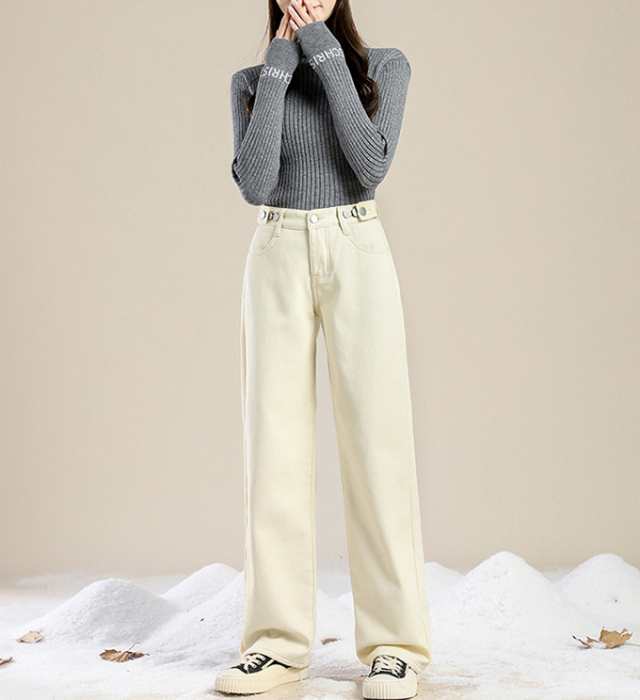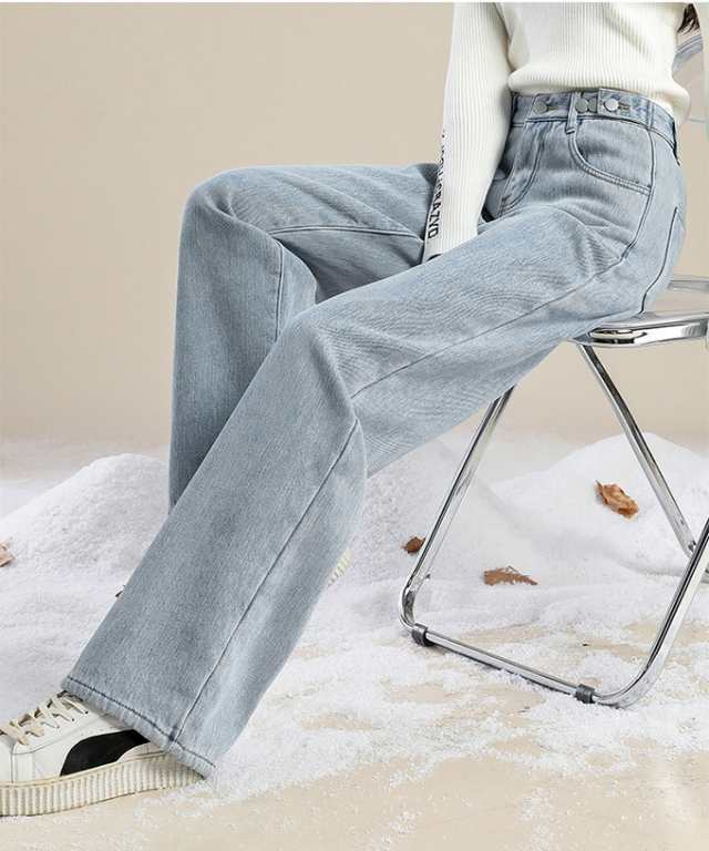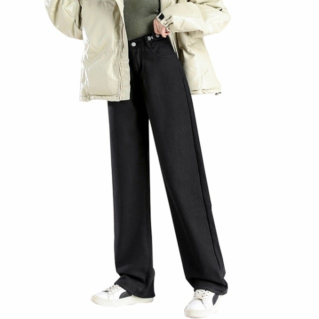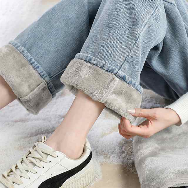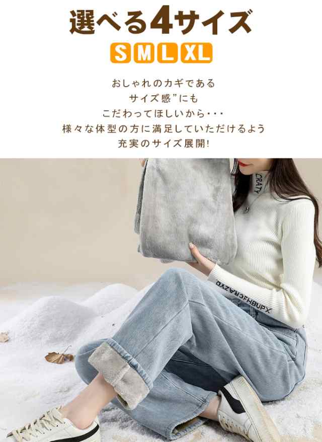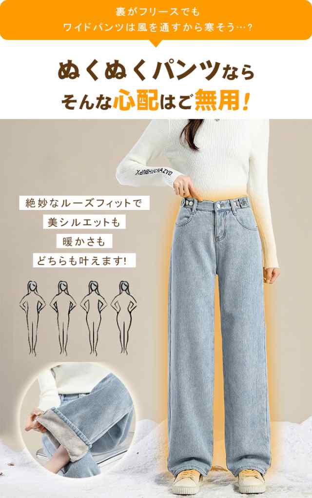 防寒 極暖裏フリース ワイドデニム 裏起毛ロングパンツ 防寒 超暖 ゆったり 通勤 ぽかぽかパンツ ぬくぬくパンツ脚長効果 レディース デニム ジーンズ