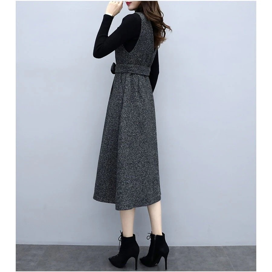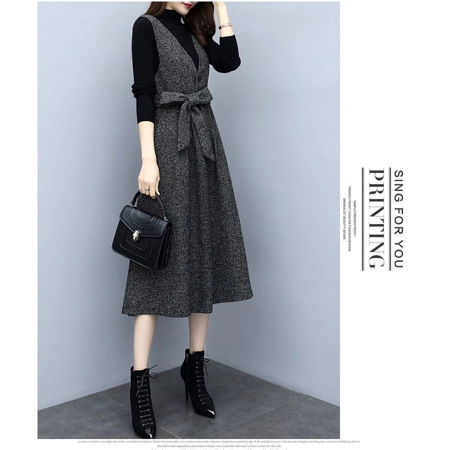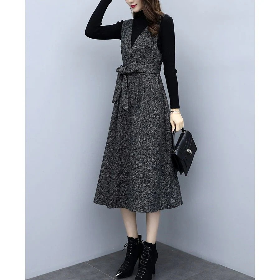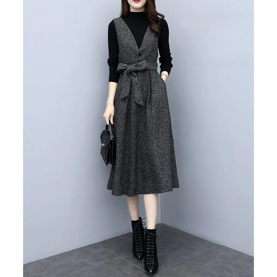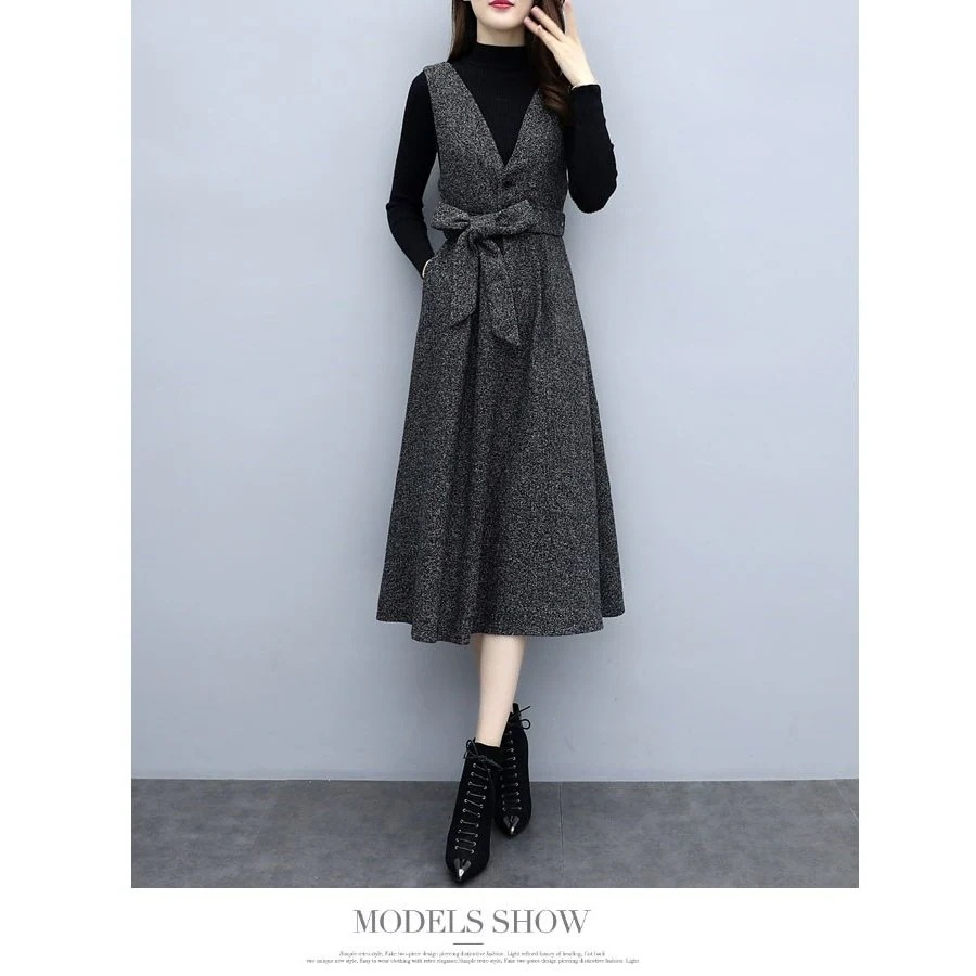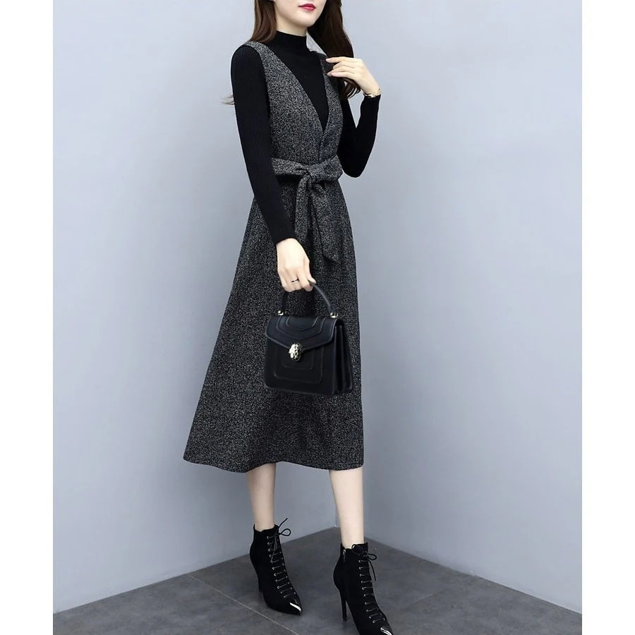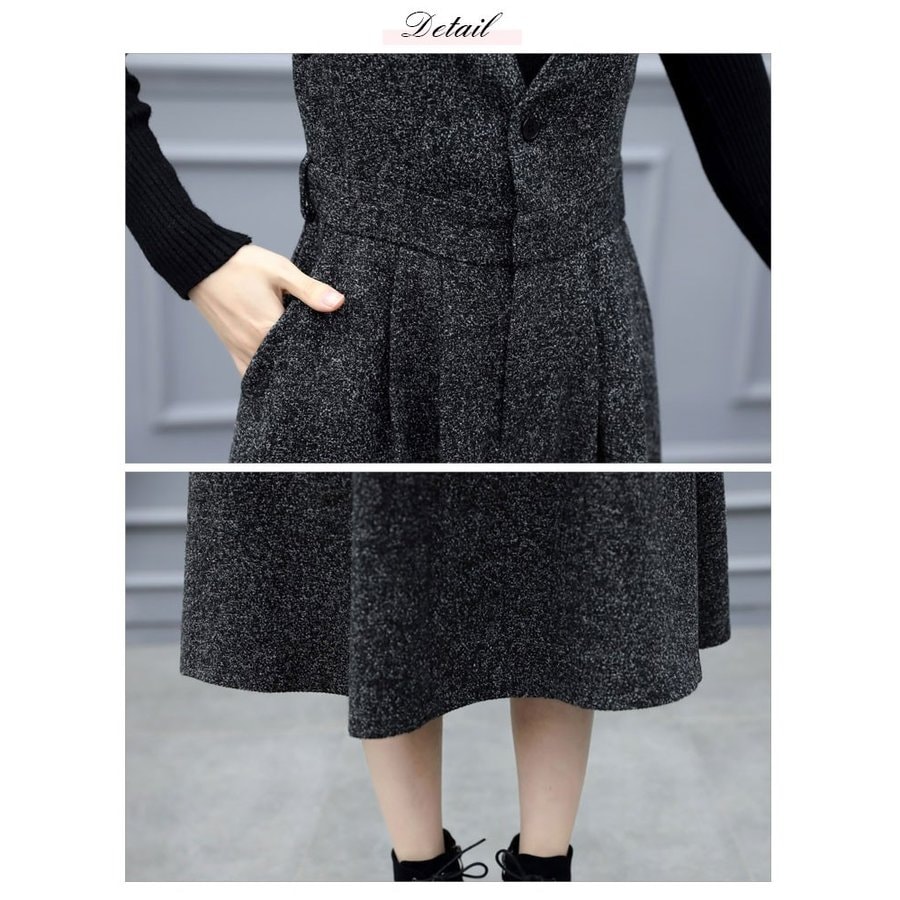 セットアップ ワンピース レディース 秋 冬 2点セット シャンパースカート 膝丈 ミモレ丈 トップ ニットワンピ