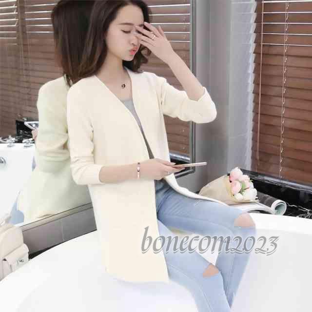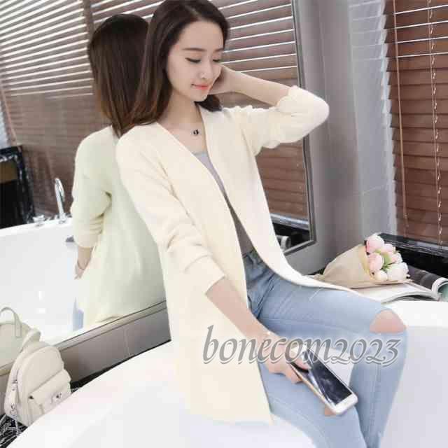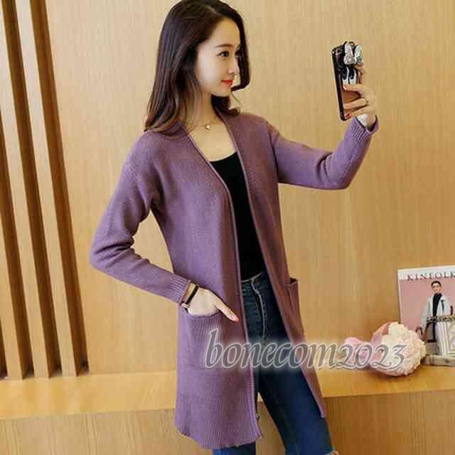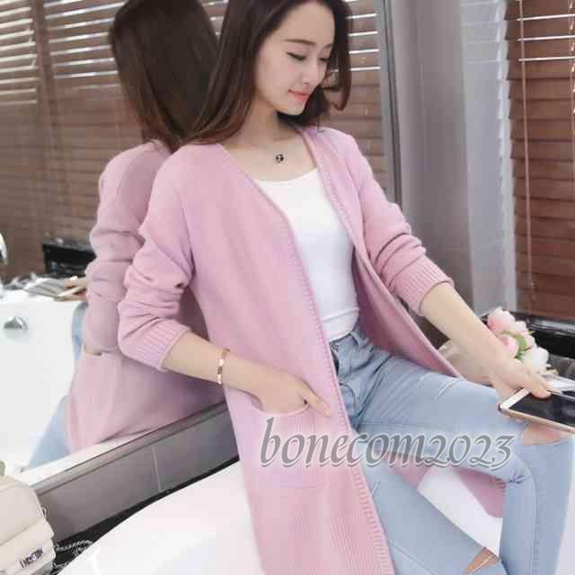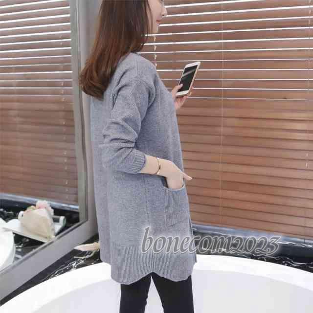 ニット カーディガン ニットコート カーデ ミディアム丈 厚手 ゆったり 体型カバー 長袖 コーディガン 秋冬 トップス 前開き アウター Vネック シンプル カジュ