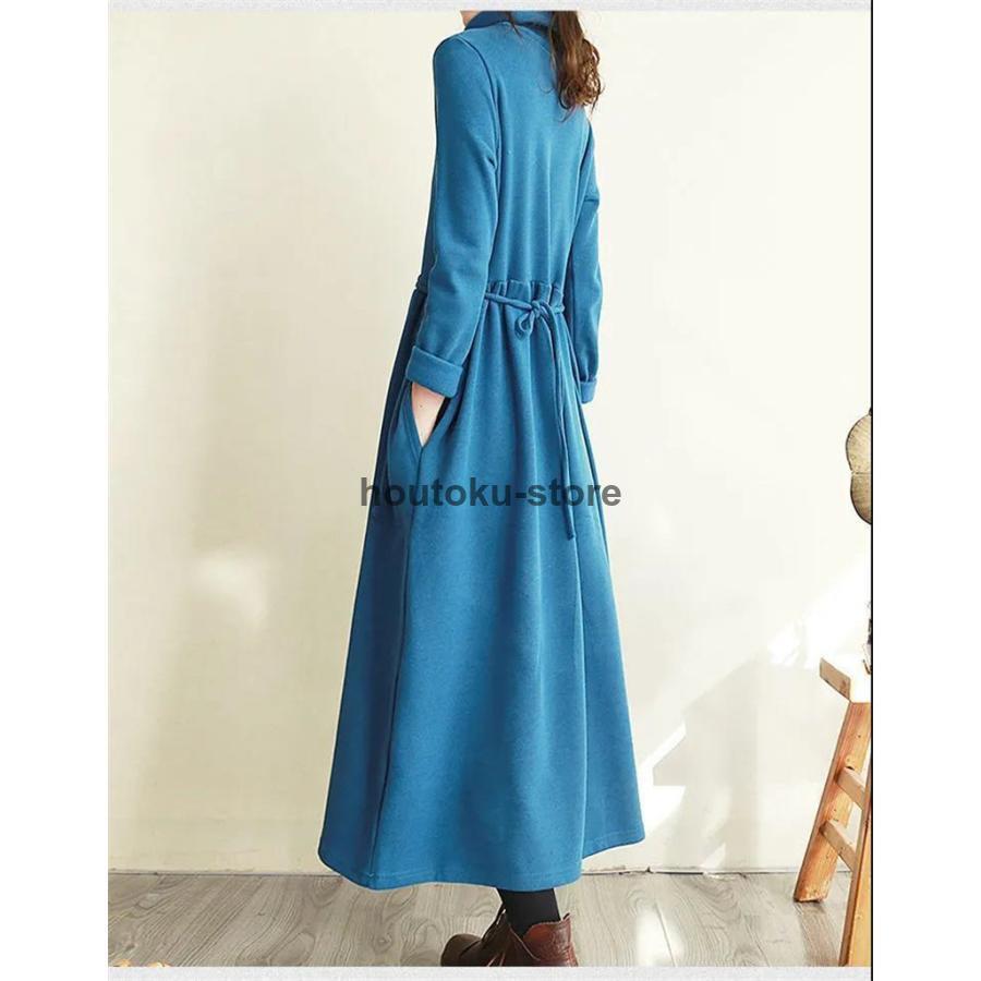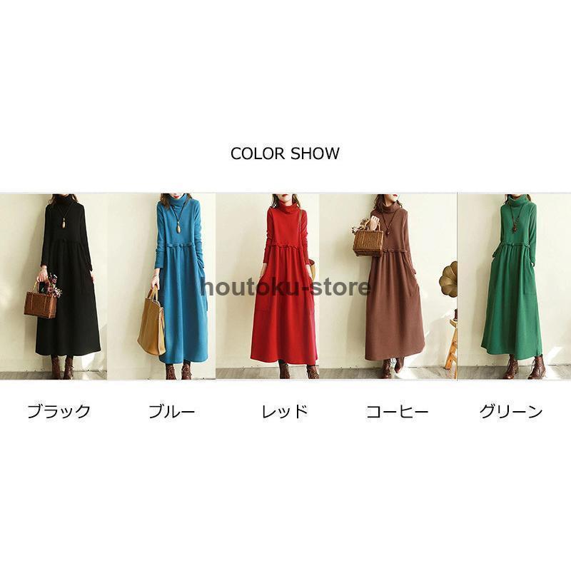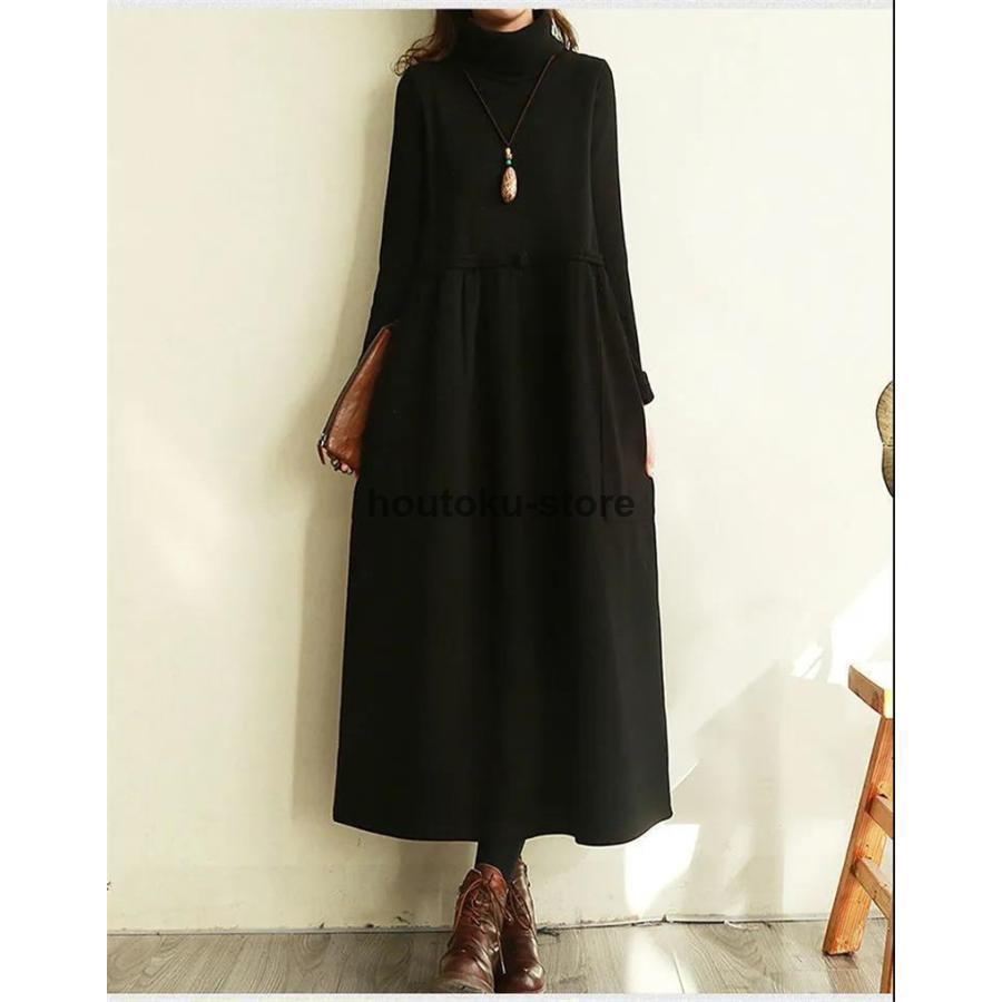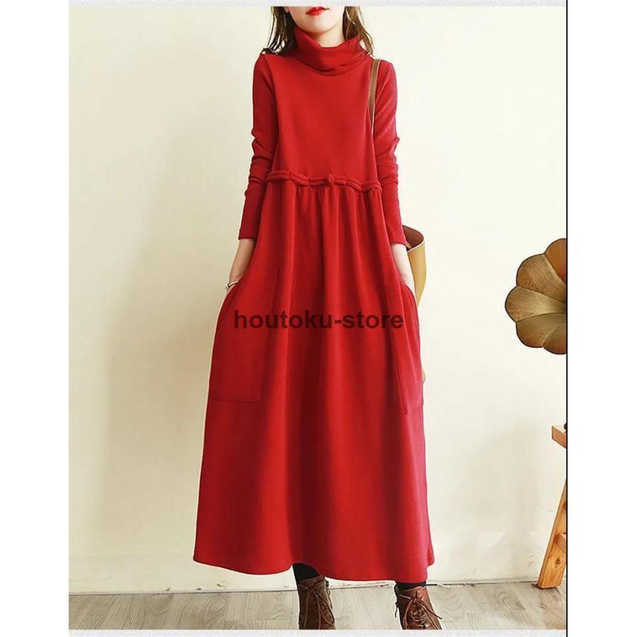 ワンピース マキシワンピース レディース ロングワンピ 秋冬 ハイネック チュニック タートルネック マキシ 無地 微起毛 裏起毛 冬 ポケット付き リラックス